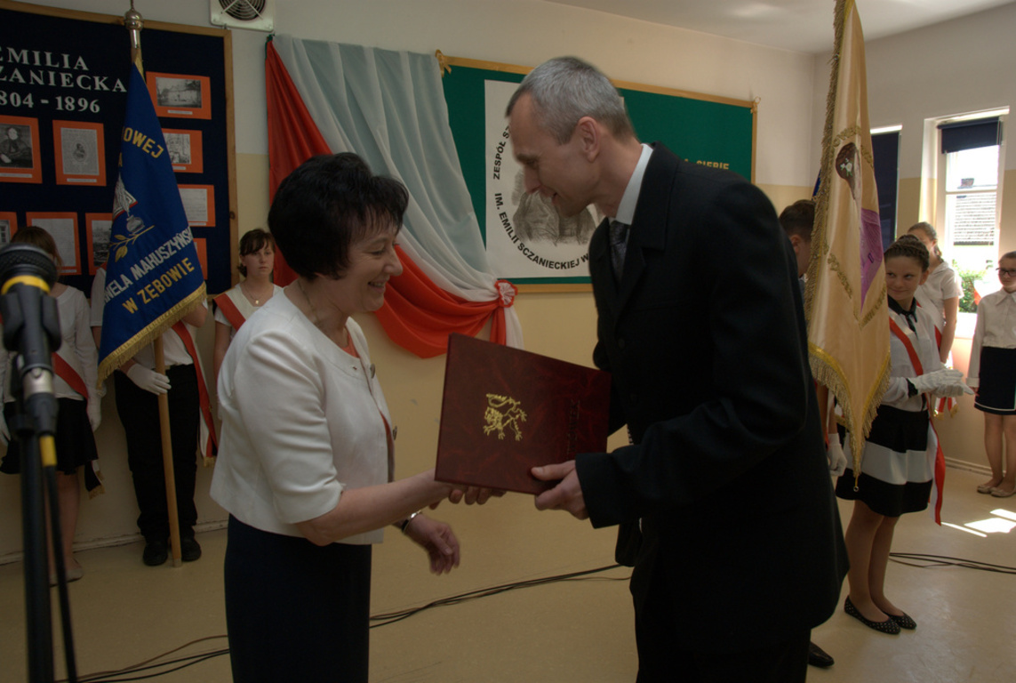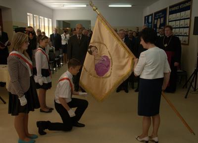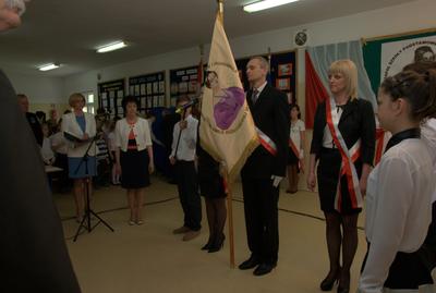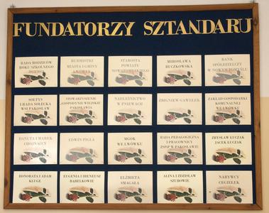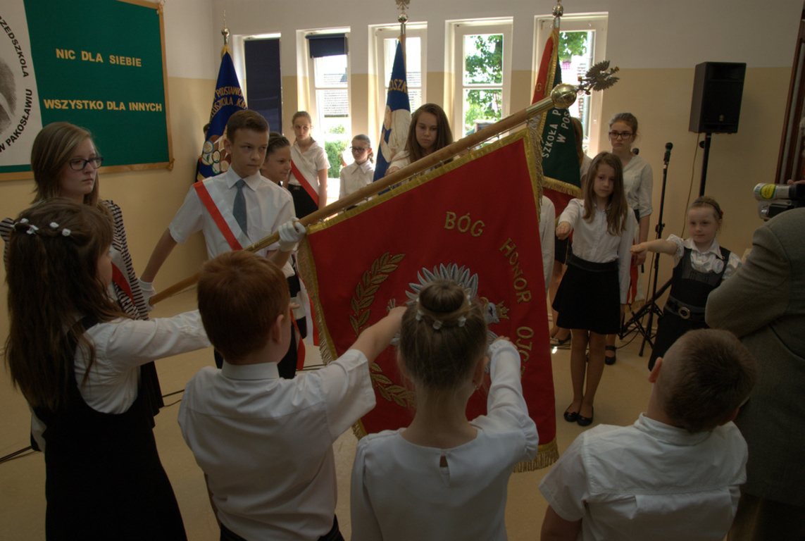 W ZSPiP w Pakosławiu dzień 20 maja 2014 roku rozpoczął się mszą świętą w Brodach, podczas której proboszcz parafii, ksiądz kanonik Sławomir Grośty poświęcił sztandar. Został on przyniesiony przez poczet sztandarowy złożony z rodziców naszych dzieci, a zarazem absolwentów naszej szkoły: pp. Annę Klimowicz, Anetę Pruszkowską i Jacka Łuczaka. Po uroczystej mszy świętej dalsze uroczystości odbywały się w szkole. Na podkreślenie zasługują wykłady otwarte na tematy: „Emilia i jej czasy”, „Emilia jakiej nie znamy”, „Emilia Sczaniecka dzisiaj”. Prelegentami byli pp. dr Marek Rezler – historyk, regionalista, autor książki, biografii pt. „Emilia Sczaniecka 1804-1896” i wielu innych książek historycznych, dr Izabela Wyszowska – historyk sztuki, specjalista turystyki biograficznej, wykładowca na Wydziale Turystyki i Rekreacji poznańskiego AWF oraz dr Zdzisław Kościański – historyk, znawca między innymi historii naszego terenu. Wykłady cieszyły się dużym zainteresowaniem o czym świadczy zapełniona sala podczas spotkania. Po krótkiej przerwie nastąpiła główna uroczystość, mianowicie przekazanie społeczności uczniowskiej sztandaru, ufundowanego przez Radę Rodziców mocno wspartą przez sponsorów. Pani dyrektor Mirosława Buczkowska odebrała sztandar przekazany przez poczet, w skład którego weszli: pp. Małgorzata Szymańska – przewodnicząca Rady Rodziców, Alina Ratajczak i Paweł Szymański. Pani dyrektor przekazała go społeczności uczniowskiej. Poczet sztandarowy stanowili uczniowie klasy VI wchodzący w skład Samorządu Uczniowskiego: Remigiusz Fornalik – zastępca przewodniczącej SU, Wiktoria Łodyga i Weronika Wrembel. Podczas uroczystości miało miejsce symboliczne wbicie gwoździ, przez sponsorów, na drzewcu sztandaru oraz wpisanie się na listę darczyńców. Wszystkim, którzy przekazali środki finansowe na okoliczność zakupu sztandaru oraz którzy w sposób poza finansowy przyczynili do uświetnienia uroczystości serdecznie dziękuje dyrektor ZSPiP w Pakosławiu p. Mirosława Buczkowska. Szczególne podziękowania należą się: UMiG we Lwówku, Radzie Miasta i Gminy Lwówek, Starostwu Powiatowemu w Nowym Tomyślu, członkom Rady Rodziców roku 2013/2014, BS w Nowym Tomyślu, Radzie Sołeckiej wsi Pakosław, Nadleśnictwu w Pniewach, Gminnej Spółdzielni SCH we Lwówku, Stowarzyszeniu „Gospodynie Wiejskie” Pakosławia, p. Zbigniewowi Gawełkowi, Zakładowi Gospodarki Komunalnej we Lwówku, pp. Danucie i Markowi Chojnackim, p. Edwinowi Pigli, p. Jackowi Łuczakowi, p. Zbysławowi Łuczkowi, pp. Eugenii i Ireneuszowi Bąbelkom, p. Magdalenie Bąbelek, pracownikom ZSPiP w Pakosławiu, pp. Honoracie i Adamowi Kluge, p. Mirosławie Buczkowskiej, pp. Alinie i Zdzisławowi Szubom, p. Elżbiecie Smagała, MGOK we Lwówku, rodzicom dzieci, wszystkim nabywcom cegiełek podczas zabaw: andrzejkowej i karnawałowej oraz nabywcom cegiełek na terenie szkoły. Na nadanie sztandaru zostały przygotowane okolicznościowe kubki oraz folderki, które będą upamiętniały tę uroczystość.