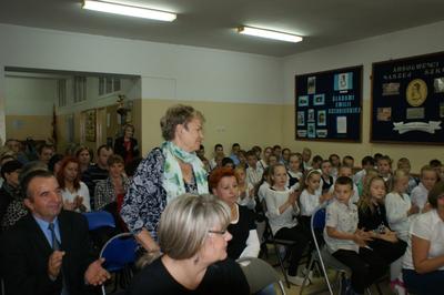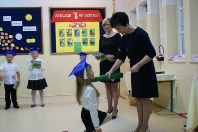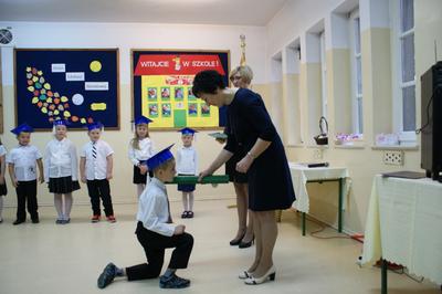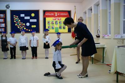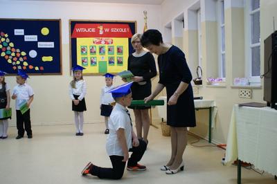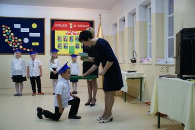 Kulminacyjnym punktem uroczystości był akt ślubowania i pasowanie na ucznia, którego dokonała pani dyrektor Mirosława Buczkowska. Swoją obietnicę złożyli również rodzice pierwszoklasistów.
