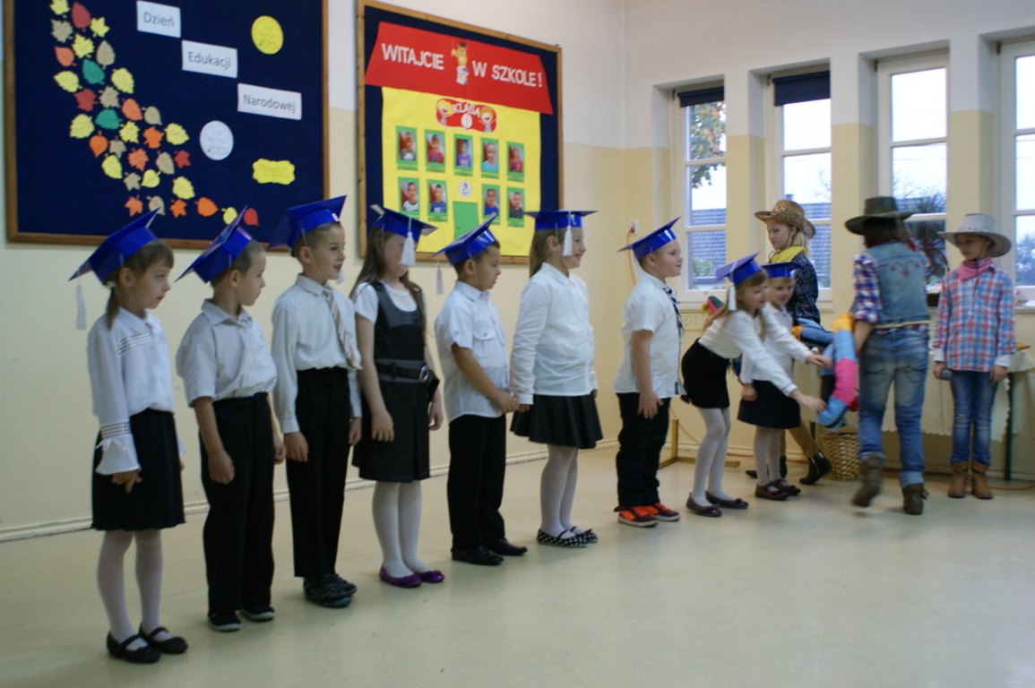 Na początku uczniowie klas starszych uczcili swoich nauczycieli i pracowników szkoły wierszami i piosenką. Wszyscy pracownicy zostali obdarowani upominkami własnoręcznie wykonanymi przez samorząd szkolny. W dalszej części akademii pierwszoklasiści udowodnili, że zasługują na miano "prawdziwego ucznia". W kowbojskim przedstawieniu uczniowie zaprezentowali znajomość szkolnych zasad i obyczajów, umiejętności taneczne, wokalne a także wykazali się niezwykłą odwagą głaszcząc węża szeryfa.