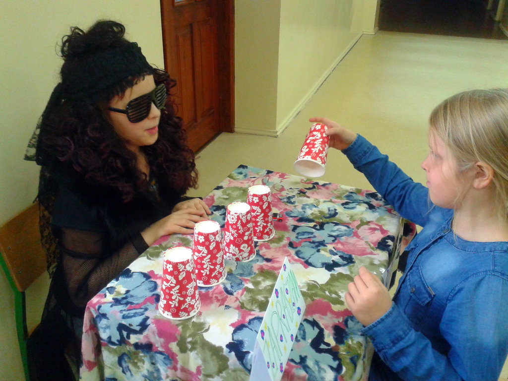 Wzdłuż szkolnego holu były ustawione stanowiska z wróżbami. Przy stolikach siedzieli uczniowie, którzy przygotowali następujące wróżby: