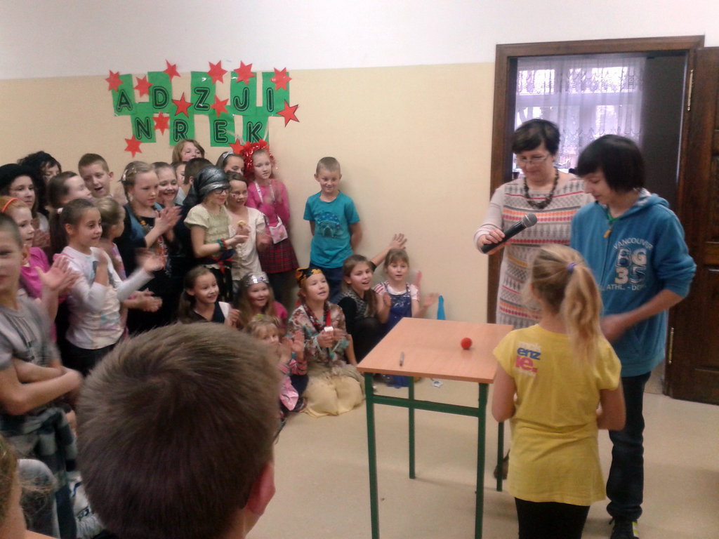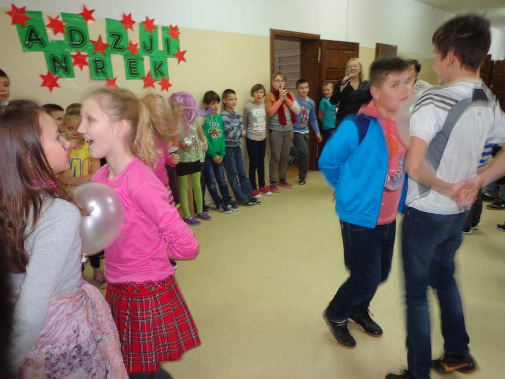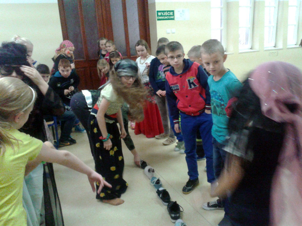 Po wróżbach nadszedł czas na konkursy i zabawy. Przy asyście obecnych pań nauczycielek uczniowie wywróżyli sobie kto jako pierwszy weźmie ślub. Uczniowie ustawiali swoje lewe buty przez cały hol, aż do drzwi wyjściowych. W klasach 1-3 zwyciężyła Marysia Bartkowiak, a w klasach 4-6 – Amelia Kniat.