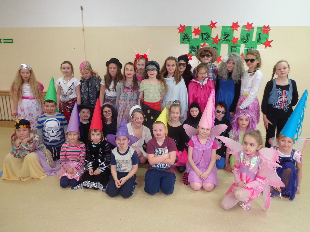 Wielu uczniów skorzystało z zaproszenia, żeby przyjść na zabawę w przebraniu. Wśród nich przeprowadzony został konkurs na najlepsze przebranie. W Jury były obecne Panie nauczycielki oraz dwóch uczniów z samorządu. Wyróżnione zostały przebrania: Adrianna Kluge jako wróżka, Weronika Florek jako cyganka, Dawid Kołodziej jako Zorro, Kacper Ceyza jako strażak, Izabela Klimowicz i Rozalia Ambroziak jako elfy.