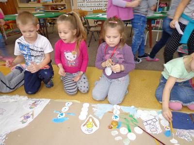 "Lubimy zimę" - to hasło, które towarzyszyło zabawom starszaków we wtorek 27.01.2015r. Inspiracją zabaw była zima, która na chwilę zawitała do nas za oknem. Po wysłuchaniu fragmentu A.Vivaldiego "Zima "z cyklu Cztery pory roku" ,obejrzeniu zimowych pejzaży i zabawach ruchowych wszyscy ochoczo zabrali się do pracy plastycznej, wykorzystując różnorodne materiały. Powstał obraz, który będzie przypominał nam, że mamy zimę.