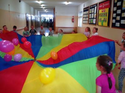 tylko jednego kolegi, który był chory.Były zabawy z chustą klanzy, z