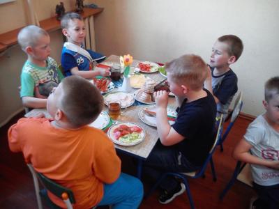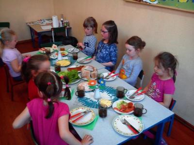 balonami i tor przeszkód. Pani Bogusia przygotowała kolację, dzieci