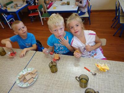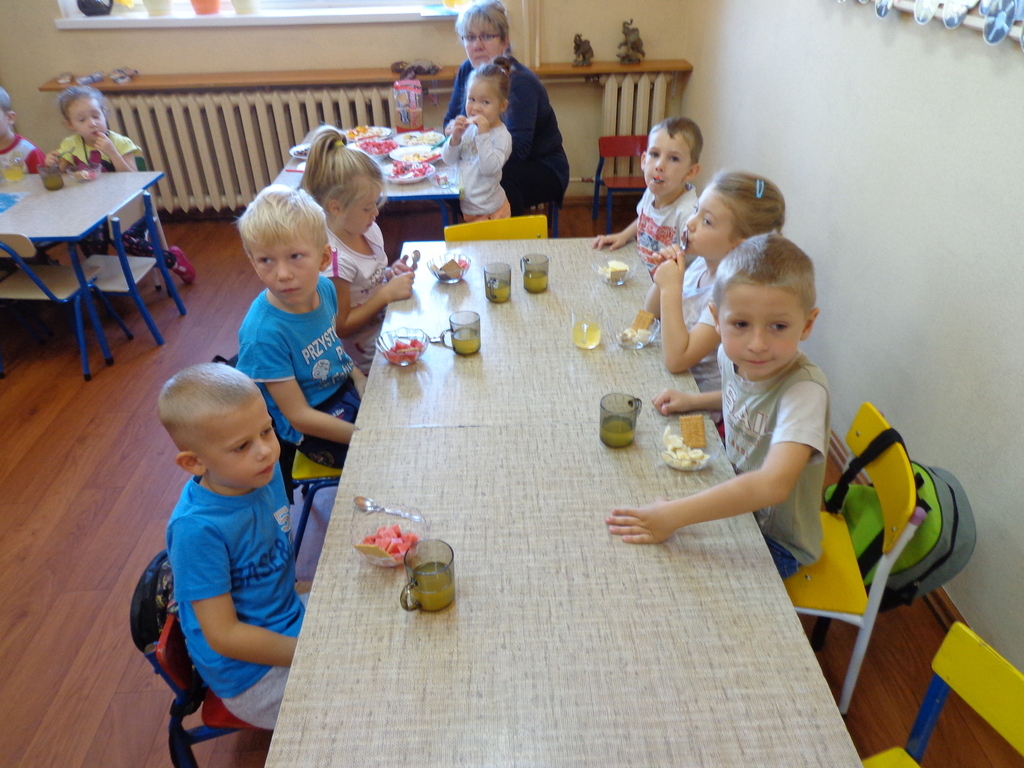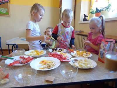 poczęstunek, każdy przygotował sobie owocową sałatkę.Wszyscy chłopcy