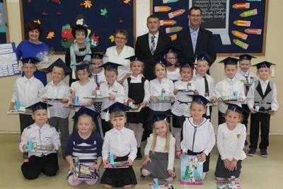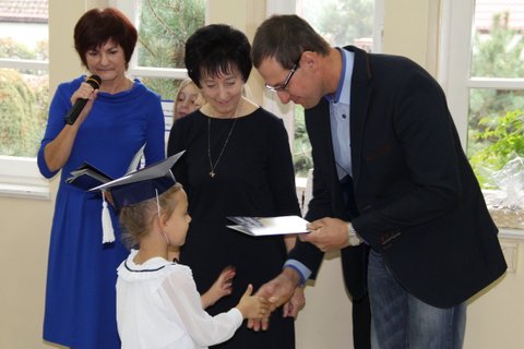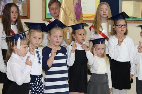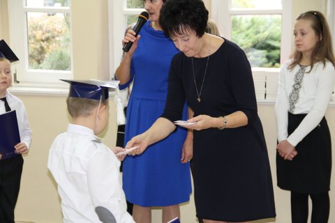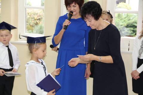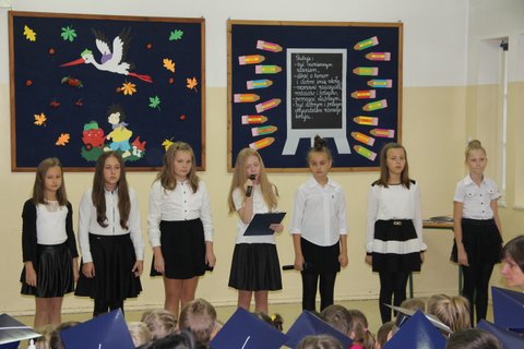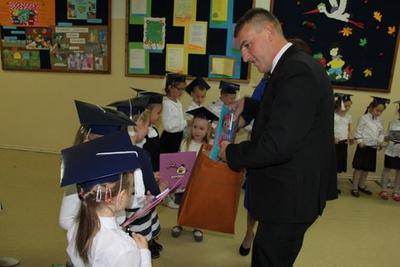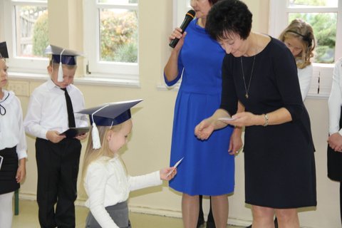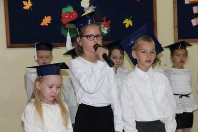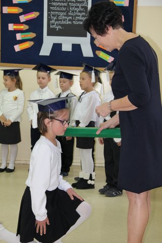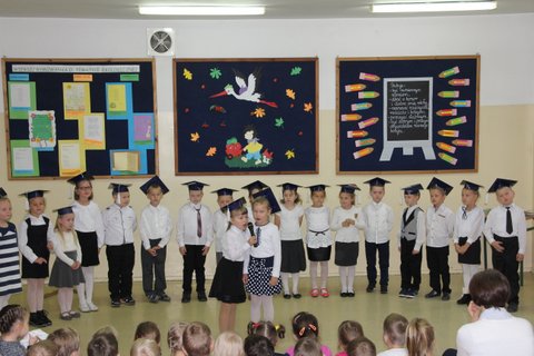 Ceremonia rozpoczęła się od części artystycznej, w której to kandydaci na małych żaków przeszli egzamin sprawdzający ich wiedzę oraz umiejętności z różnych dziedzin nauki. Tłumnie zgromadzeni rodzice z podziwem oklaskiwali występy swoich pociech. Następnie, po odśpiewaniu Mazurka Dąbrowskiego oraz złożeniu ślubowania, dzieci zostały uroczyście pasowane na uczniów przez Dyrektora Szkoły Panią Mirosławę Buczkowską. Wręczenie dyplomów, legitymacji szkolnych oraz upominków, a także pamiątkowe zdjęcia zakończyły tą niezwykle ważną uroczystość.