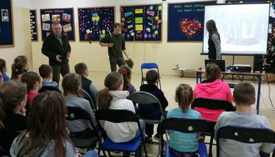 20 stycznia uczniowie naszej szkoły spotkali się z leśniczym panem Tomaszem Piaskiem. Tematem spotkania było dokarmianie zwierząt zimą. Dzieci obejrzały prezentacje, wysłuchały pogadanki a następnie poszły do pobliskiego lasu aby wysypać przygotowane dla zwierząt smakołyki. Na koniec wszyscy ogrzali się przy ognisku i usmażyli kiełbaski przygotowane przez Stowarzyszenie "Gospodynie Wiejskie Pakosławia".