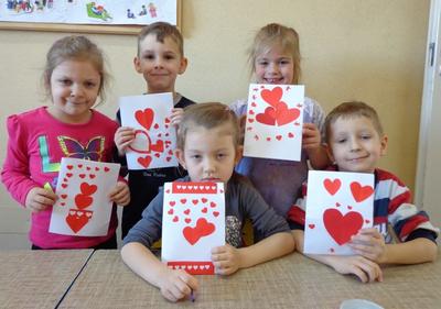 kolegą i zrobili walentynkowe kartki.Nie zabrakło oczywiście lizaków