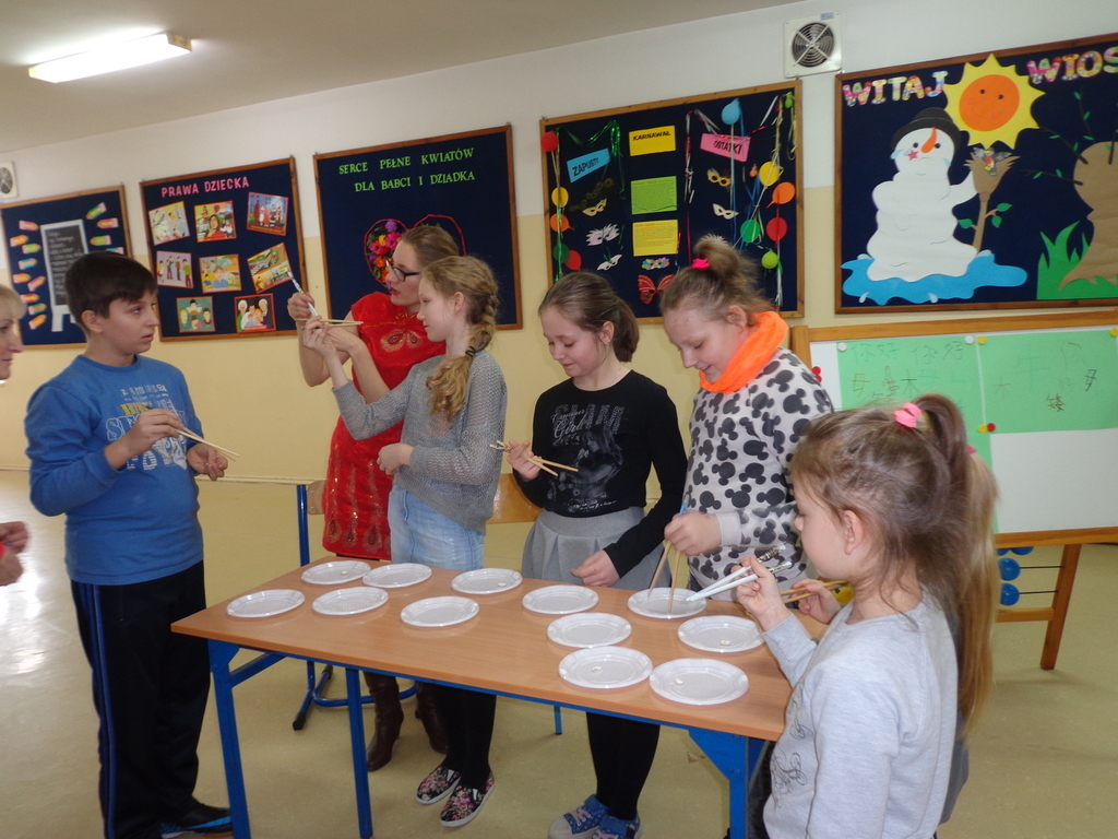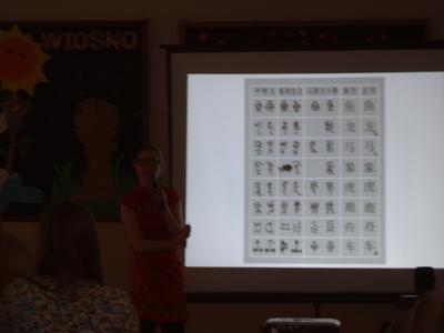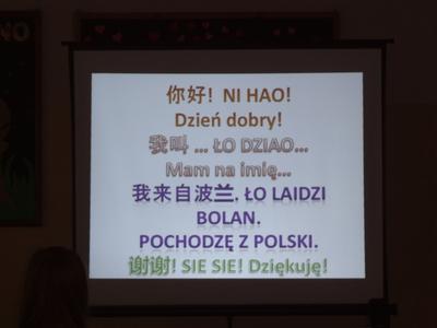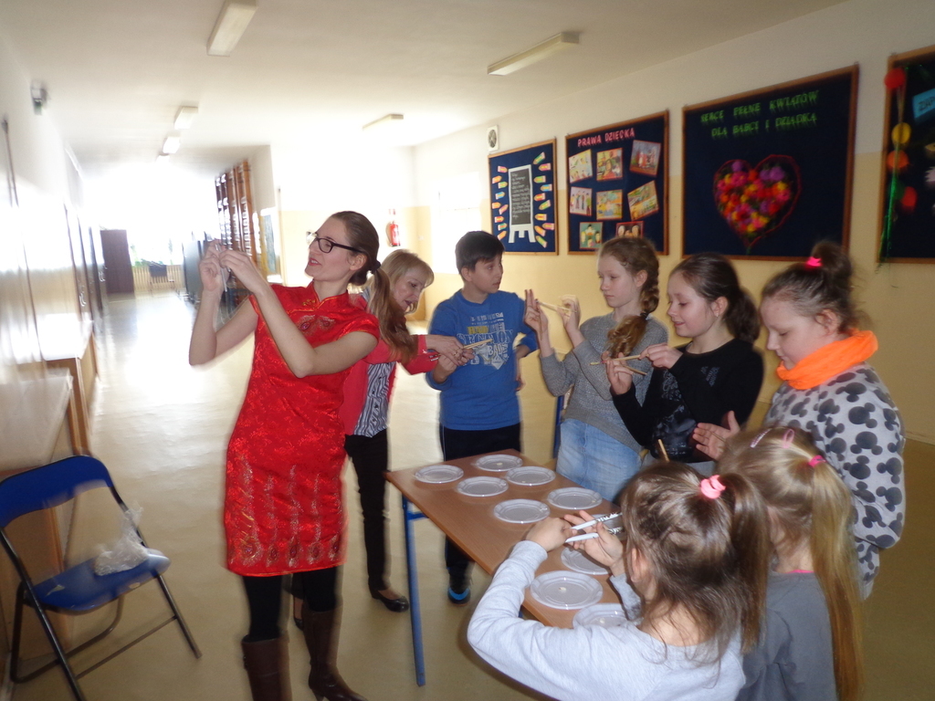 We wtorek, 01 marca, gościliśmy w szkole panią Karinę Targosz, mieszkankę naszej parafii i aktualnie studentkę Handlu Zagranicznego w Chinach. Nasz gość zaznajomił nas z ciekawostkami o tym kraju oraz zasadami mowy chińskiej.Nauczyliśmy się witać i przedstawiać w tym języku. Mogliśmy zmierzyć się z pisownią niektórych wyrazów, obejrzeć nagrane w Chinach filmiki. Wiele radości sprawił nam konkurs posługiwania się pałeczkami.