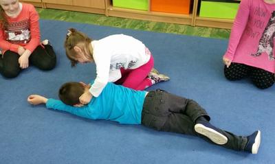 Uczniowie klasy drugiej w minionym tygodniu nauczyli się jak pomagać innym. Rozmawiali o tym jakie są podstawowe zasady udzielania pierwszej pomocy. Podczas zajęć przypomnieli sobie numery alarmowe, nauczyli się przeprowadzić rozmowę służącą wezwaniu pomocy w razie wypadku. Nauczyli się udzielać pomocy w razie zadławienia, oparzenia, krwotoku z nosa, przegrzania i zranienia. Ćwiczyli pozycję boczną ustaloną oraz spróbowali resuscytacji. Po takich zajęciach na pewno każdy z uczniów będzie wiedział jak się zachować w razie wypadku.
