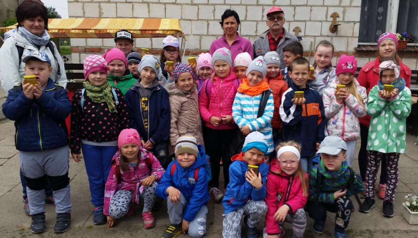 Uczniowie klasy I i II wybrali się w odwiedziny do pana Jana Żybury miejscowego pszczelarza. W czasie tej wizyty uczniowie dowiedzieli się jak powstaje miód, ile pszczół mieszka w ulu i na czym polega praca pszczelarza. Wisienką na torcie byłowykręcenie świeżego miodu ijego skosztowanie