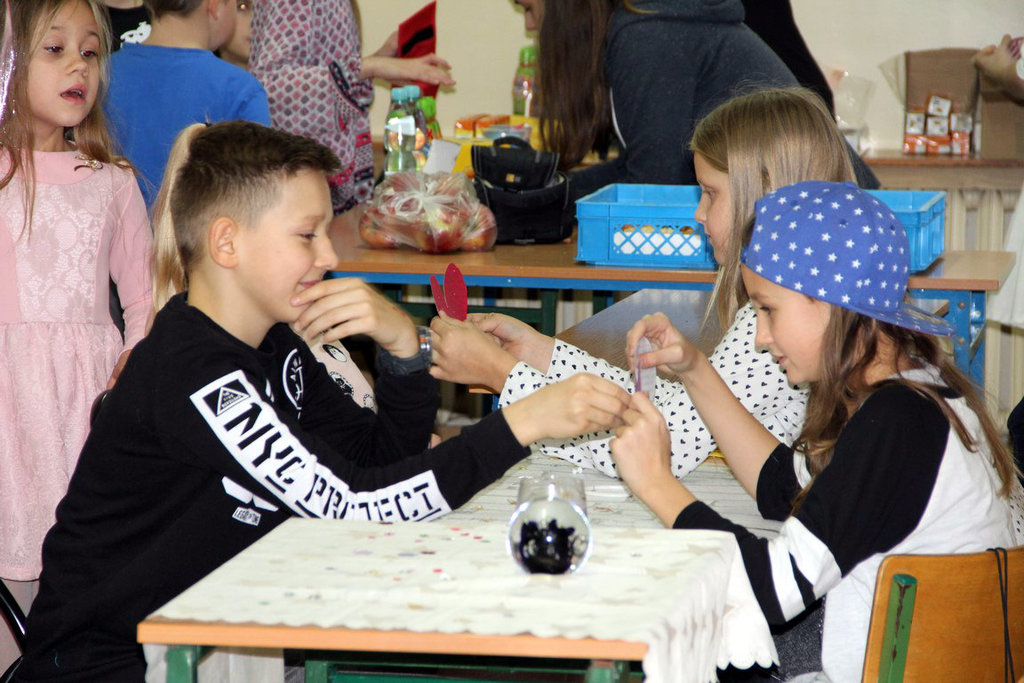 30 listopada odbyły się Andrzejki. Jak co roku nie zabrakło wróżb, konkursów i zabawy. Było wróżenie z ręki, szklana kula, serduszka z imionami, kubeczki, kości oraz wróżby z kart. Uczniowie brali udział w konkursie wiedzy na temat Andrzejek i w konkursie obierania jabłek. Szczególnym zainteresowaniem cieszyły się konkursy na ciekawe pomalowanie twarzy oraz na fantazyjną fryzurę. Na koniec odbył się szalony taniec z misiem. Dzięki ustawianiu butów dowiedzieliśmy się kto pierwszy zmieni stan cywilny. Impreza odbyła się przy muzyce przygotowanej przez DJ-ów, a wszyscy mogli zakupić jedzenie i picie w naszym sklepiku.