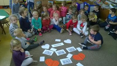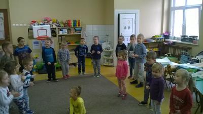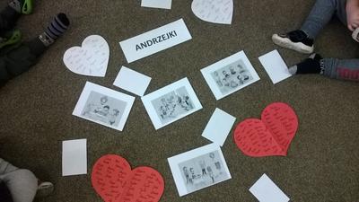 Przedszkolacy również poznali tradycje i zabawy andrzejkowe. Najpierw rozwiązywali zagadki, słuchali opowiadania a potem już tylko zabawa. Był rzut paputkiem do tyłu, żeby sprawdzić ,kto pierwszy wyjdzie za mąż. Przekłuwali serce, układali patyczki. Nie zabrakło zabaw tanecznych i poczęstunku od pani Bogusi.