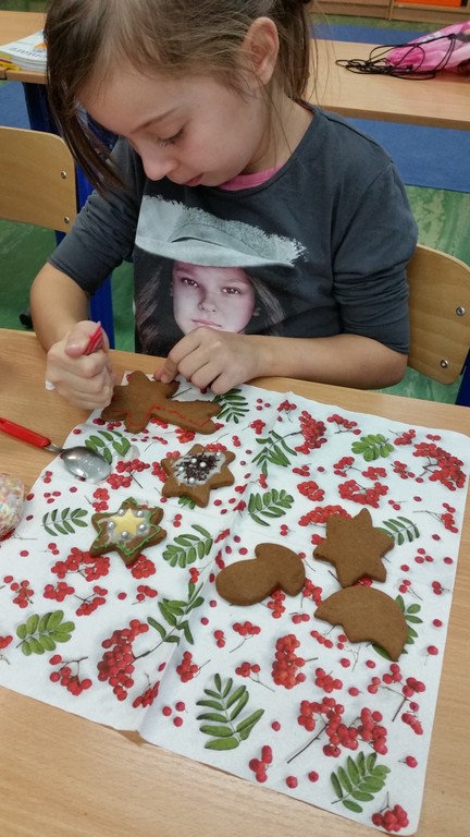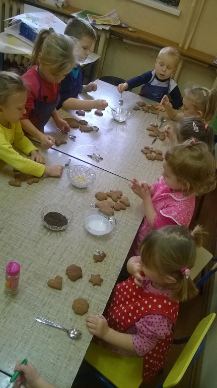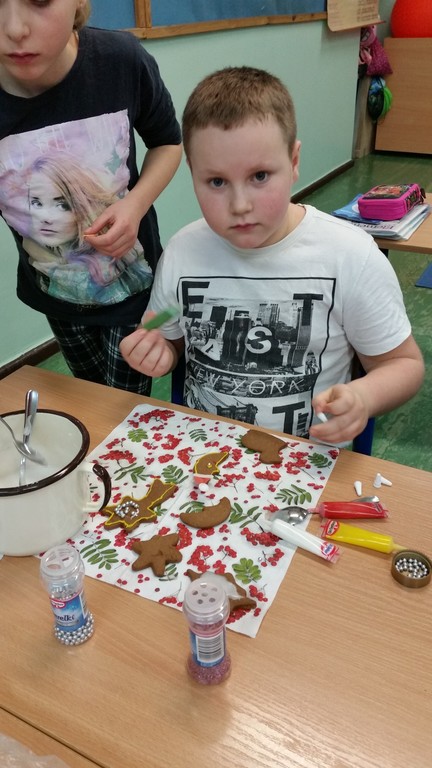 wycinali pierniki. Gdy pani Bogusia upiekła, pięknie udekorowali i