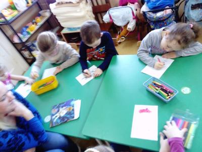 W środę 11.01.2017 w przedszkolu odbyło się kolejne czytanie bajki dzieciom przez rodziców. Tym razem była mama Pawła pani Joanna Pogorzelczyk, która przeczytała bajkę pt „Piorun”. Dzieci chętnie zapoznały się z przygodami psa Pioruna. Po rozmowie na temat psa przyszła kolej na rozpoznawanie postaci z różnych bajek, które przygotowała mama Pawła. Wszyscy bez problemu rozwiązali zagadki i pokolorowali obrazki. Na koniec spotkania zrobiliśmy gazetkę i dostaliśmy niespodziankę –lizaka. Dziękujemy za miło spędzony czas i czekamy na następne spotkanie.