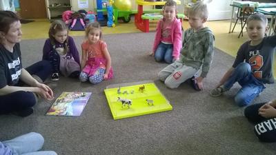 W piątek 24.02.2017 do starszaków przyszła mama Piotra Grocholewskiego, aby przeczytać dzieciom bajkę. Pani Marzena wybrała opowiadania z cyklu „Życie na wsi”. To nie koniec przygotowań na spotkanie – Piotr i jego tata przygotowali zagrodę wiejską, która była potrzebna do zadań w przedszkolu. Wszyscy chętnie słuchali pani Marzeny i zapoznali się z przygodami zwierząt żyjących w gospodarstwie. Po rozmowie na temat wysłuchanego tekstu, dzieci, wśród zabawek musiały poszukać mieszkańców z bajki ustawić w odpowiedniej części zagrody a brakujące zwierzęta ulepić z plasteliny .Szybko i miło minął nam czas. Na koniec spotkania Piotr poczęstował wszystkich lizakiem.