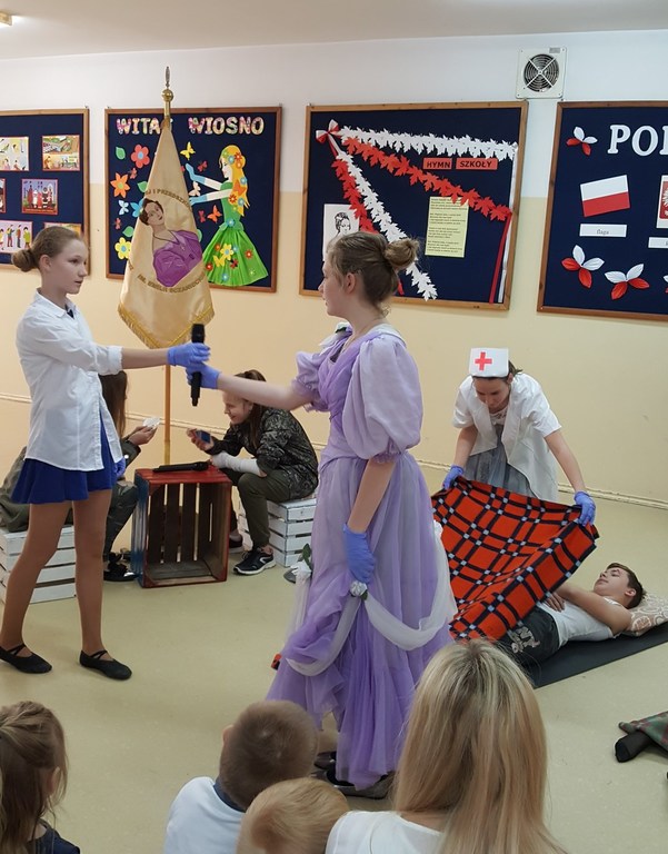 12 maja obchodziliśmy w naszej szkole Dzień Patrona. Uroczystość rozpoczęliśmy od złożenia kwiatów pod obeliskiem Emilii Sczanieckiej i odśpiewaniem hymnu państwowego i hymnu szkoły. Następnie już na holu uczniowie obejrzeli film o historii Polski. Każda klasa przygotowała też scenki z życia Emilii.
