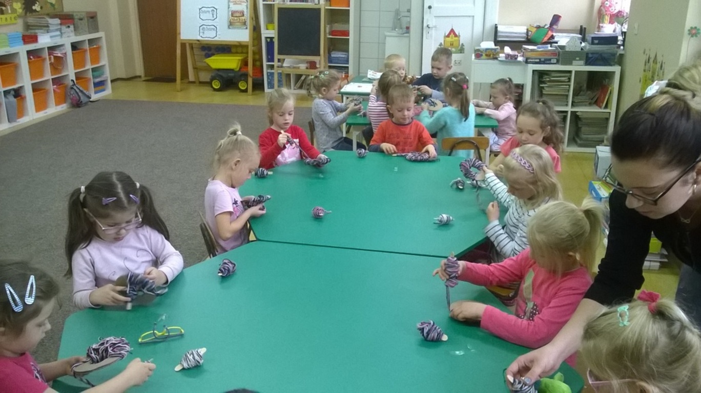 Po wakacyjnej przerwie w grupie starszaków odbyło się rodzinne czytanie bajki. Tym razem do przedszkola przyszła mama Majki Nykiel i przeczytała dwie bajki.Jedna to "Złota gęś", druga "Imbryk".Dzieci chętnie wysłuchały treści i rozmawiały na ich temat. Następnie pod okiem pani Natalii wykonały maskotkę z pomponów.Każdy musiał przygotować pomponik, drugi dostał w prezencie , połączyć oba, przyozdobić i już gotowe. Na zakończenie zajęć dzieci dostały cukierki. To był bardzo miły dzień. Już zapraszamy na następne czytanie.