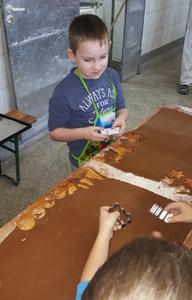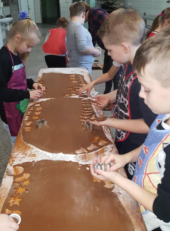 Nadszedł adwent, czas świątecznych przygotowań, więc klasy I-III i przedszkolacy zabrali się do pracy.Przedszkolacy we wtorek 5.12.2017 piekli pierniki, którymi poczęstują rodziców podczas spotkania przy choince.To wcale nie takie proste zadanie dla młodszych kolegów, gdy ciasto uparcie klei się do rąk i stolika.Na szczęście pani Bogusia przybiegła z pomocą i wszyscy z ogromnym zaangażowaniem wycięli pierniki.Natomiast uczniowie klas I-III 12.12. 2017 wybrali się do GS Lwówek, gdzie pod czujnym okiem pana sołtysa Andrzeja Basińskiego - cukiernika wykrawali pierniki. Najprzyjemniejszym zajęciem była ich dekoracja lukrowymi pisakami, kolorową posypką i degustacja po skończonej pracy.Mamy nadzieję, że naszym gościom też będą smakowały.