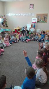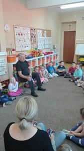 W poniedziałek 07.05.2018r. na zaproszenie przedszkolaków przyszedł pan Z. Łuczak.Tematem spotkania było przedstawienie pracy strażaków, którzy w piątek obchodzili swoje święto. Dzieci chętnie dzieliły się swoją wiedzą na ten temat, ale i wysłuchały opowieści pana Łuczaka. Z powodu remontu remizy umówiliśmy się na spotkanie w terminie późniejszym, aby obejrzeć strój strażaka, który ubiera , gdy rusza do akcji i wóz strażacki.Pan Zbyszek Łuczak, dobrze wie, co lubią dzieci i przyniósł na poczęstunek cukierki. Wszystkim strażakom życzymy wszystkiego najlepszego .