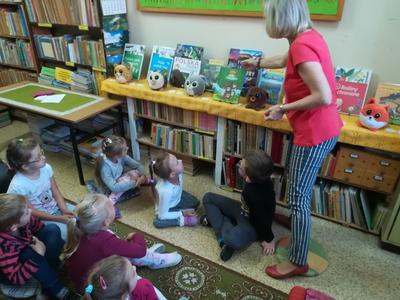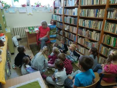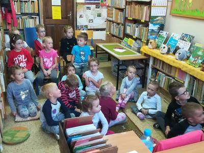 W środę 26.09.2018 r. grupa starszaków udała się do biblioteki na czytanie. Pani Ulka przeczytała I.część z serii "Gang Słodziaków". Bohaterowie są dobrze znani dzieciom, dlatego chętnie wysłuchali przygody o jeżyku. Po wysłuchanej opowieści wszyscy już wiedzieli co znaczy powiedzenie"wszędzie dobrze a w domu najlepiej".Na koniec spotkania dzieci wykonały ilustracje do bajki i otrzymały naklejkę jeżyka.