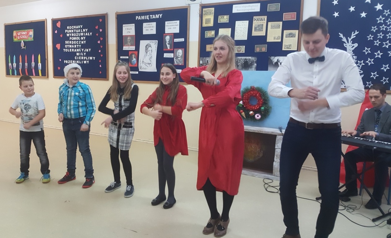 21 grudnia 2018r. był bardzo świątecznym dniem w naszej szkole. Na początek w klasach odbyły się klasowe wigilie. Uczniowie wraz ze swoimi wychowawcami podzielili się opłatkiem, złożyli sobie życzenia i spędzili ten czas na śpiewaniu kolęd,a pod choinkami każdy znalazł dla siebie prezent. Następnie wszyscy spotkaliśmy się na holu, aby wysłuchać opowiadania "Dziewczynka z zapałkami" wraz z inscenizacją przygotowaną przez uczennice klas starszych w ramach Narodowego Programu Czytelnictwa. Kolejnym punktem były występy uczniów, którzy wzięli udział w konkursie kolęd i piosenek świątecznych organizowanym przez sołectwo Pakosławia, który odbył się 16 grudnia. Następnie odbyło się rozczygnięcie konkursu na najpiękniejszą choinkę z zapałek. Na koniec wszyscy wysłuchaliśmy przepięknego koncertu w wykonaniu artystów z Poznania i w świątecznych nastrojach rozeszliśmy się do domów.