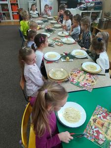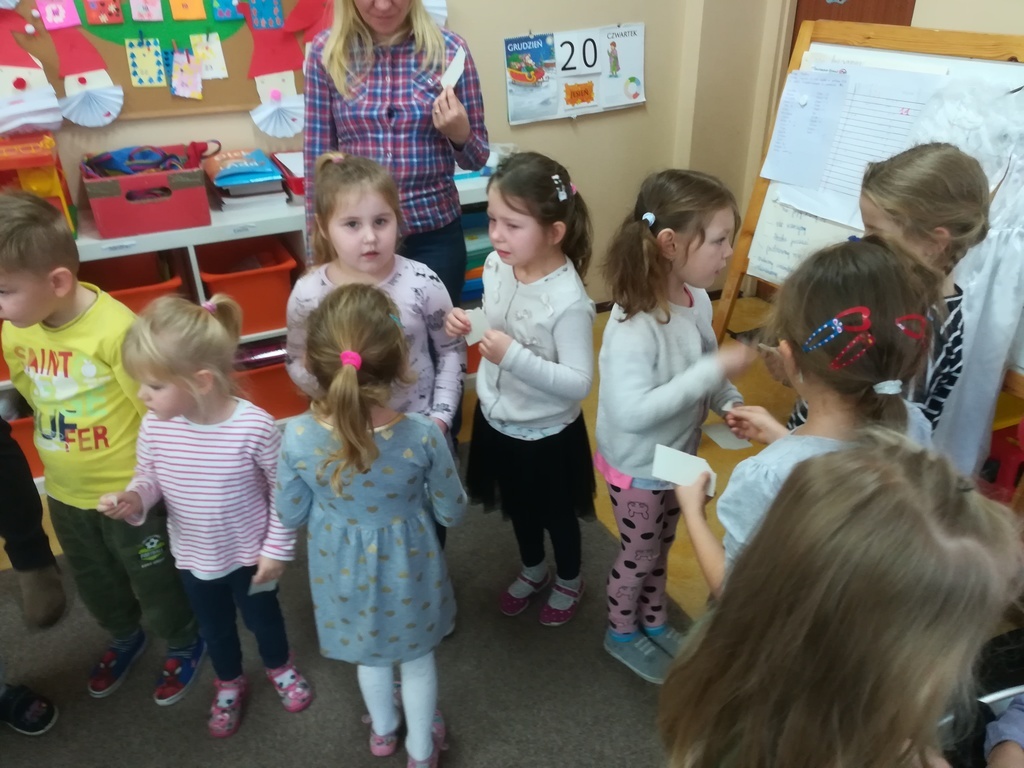 Ostatni tydzień przed świętami był dla przedszkolaków pełen wrażeń. W środę 19.12. do przedszkola przyszli rodzice na "spotkanie przy choince".Najpierw dzieci zaprezentowały program artystyczny, następnie odwiedził ich Gwiazdor z workiem pełnych prezentów.Nie zabrakło wspólnego biesiadowania z upieczonymi wcześniej piernikami. W czwartek 20.12 dzieci miały wigilię, poznały wigilijne potrawy, podzieliły się opłatkiem, złożyły życzenia i zasiedli do stołu. Czas świętowania w przedszkolu zakończył się w piątek 21.12 spotkaniem na holu, podczas którego dzieci obejrzały "Dziewczynkę z zapałkami" , razem z koleżankami i kolegami ze szkoły śpiewały kolędy. Na koniec spotkania wzięli udział w koncercie. Pełni uśmiechu i radości wrócili do sali i poszli do domu.