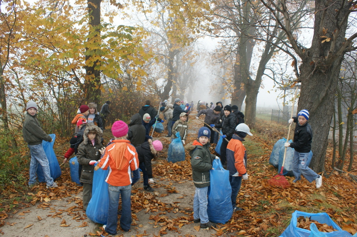 W dniach 8 i 9 listopada 2011r. wszyscy uczniowie z klas I-III i VI-VI grabili liście na alei kasztanowców, przy drodze do „Wielkiego Lasu”. Akcji patronowało, podobnie jak w poprzednich latach, Nadleśnictwo Pniewy.