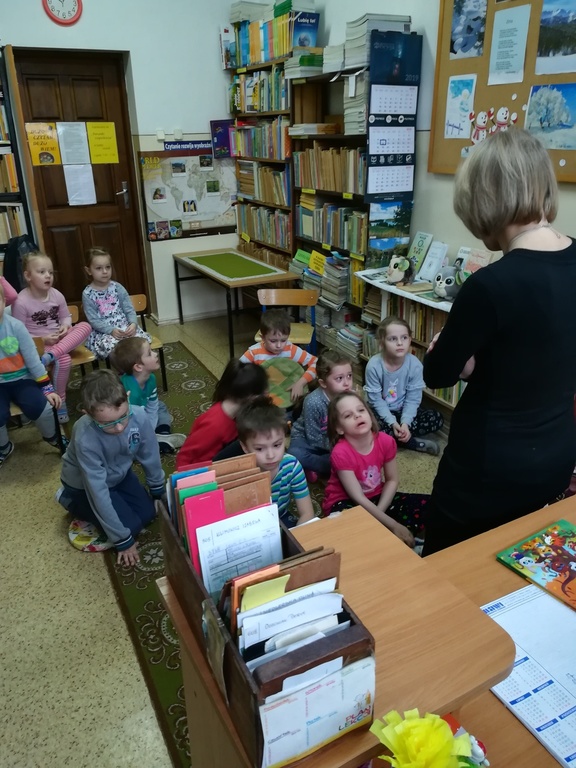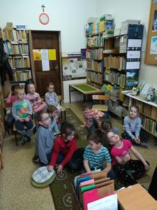 W środę 20.03.2019 odbyło się comiesięczne spotkanie starszaków w bibliotece. Dzieci wysłuchały fragmentu pt. "Obcy" z serii Gang słodziaków.Dzieci dowiedziały, że ktoś nowy i obcy, jeśli go poznamy, może stać się naszym przyjacielem. Pani Ulka jak zwykle przygotowała niespodziankę w postaci naklejek.