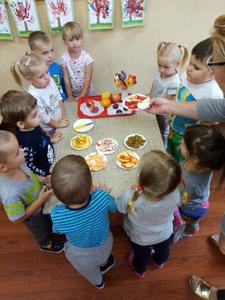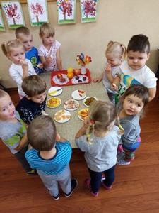 We wtorek 1.10.2019 r. dzieci z grupy młodszej rozpoznawały owoce i rozmawiały o potrzebie ich spożywania, aby być zdrowym. Najpierw każdy oglądał i nazywał wybrany owoc , co nie było większym problemem , ale rozpoznać za pomocą zmysłów węchu, dotyku i smaku nie było takie proste.Dzieci uczyły się segregować i liczyć, każdy w miarę swoich możliwości. To były ciekawe doświadczenia w poznawaniu owoców.