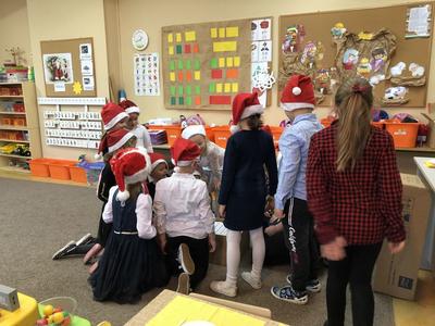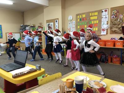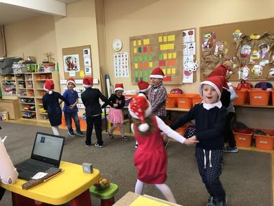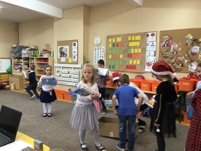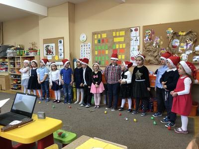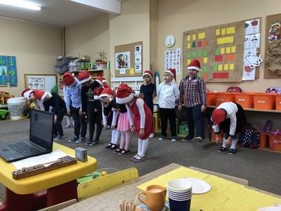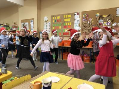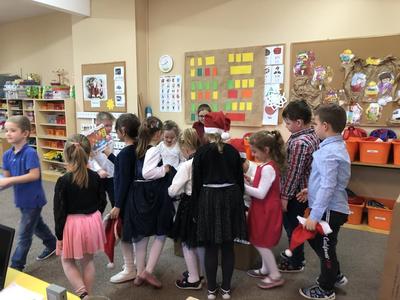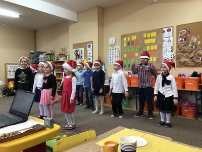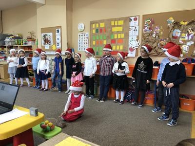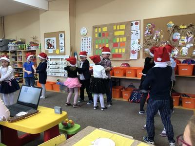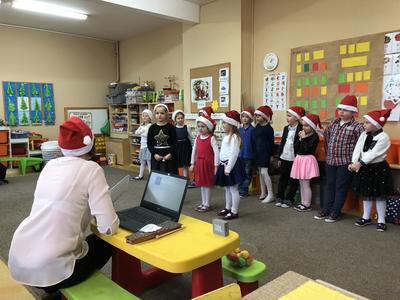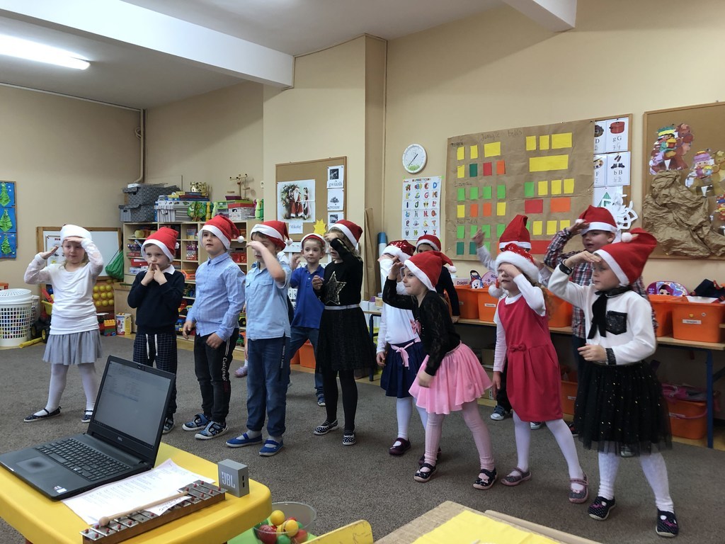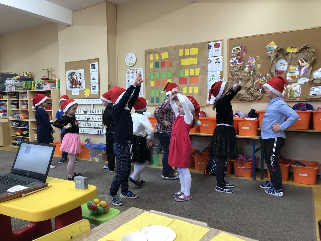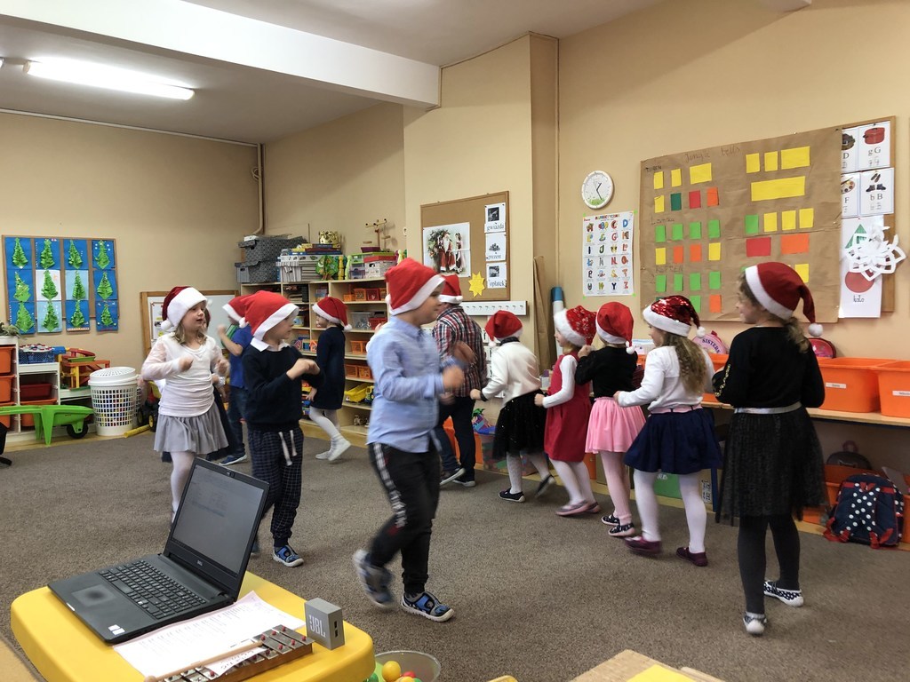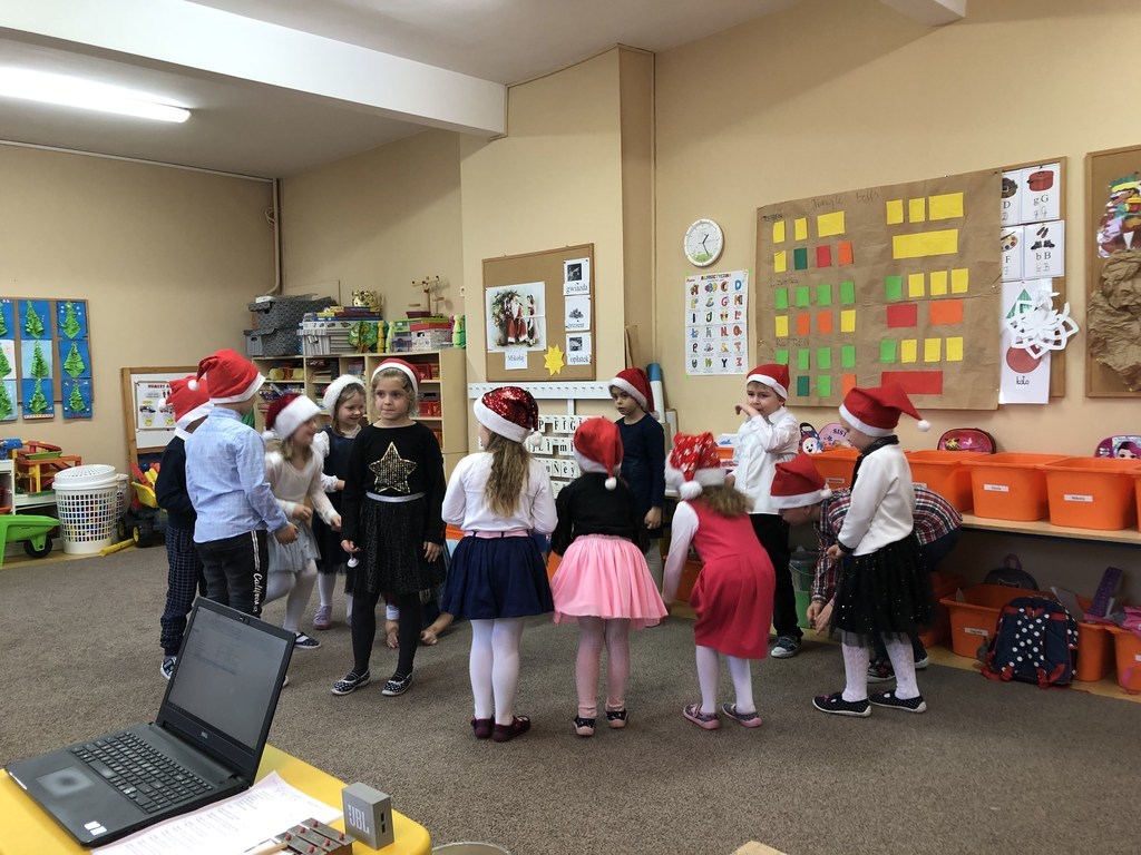 W poniedziałek 16.12.2019 na zaproszenie starszaków do sali przyszli rodzice na spotkanie przy choince. Starszacy nakryli do stolików i przygotowali miejsca dla gości.Na początku jak to zwykle bywa dzieci przedstawiły program artystyczny, oprócz wierszy i piosenek zagrali na instrumentach, bum bum rurkach i zatańczyli. W drugiej części programu w oczekiwaniu na Gwiazdora zaprezentowały świąteczne tańce. Niestety i tym razem oczekiwany gość nie dotarł osobiście z prezentami, tylko zostawił paczkę pod drzwiami sali. Na szczęście była zaadresowana do Pakosławia i trafiła pod odpowiedni adres. Szybko udało się ją otworzyć i wszyscy otrzymali prezenty. Był wspólny poczęstunek na którym nie mogło zabraknąć wypieków rodziców a przede wszystkim upieczonych przez dzieci pierników.Pan Dyrektor również przygotował dla dzieci niespodziankę i podarował dzieciom kreatywne zestawy do zabawy.
