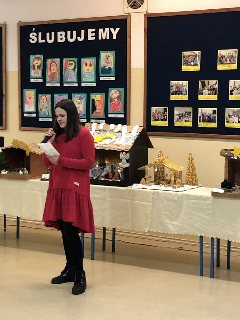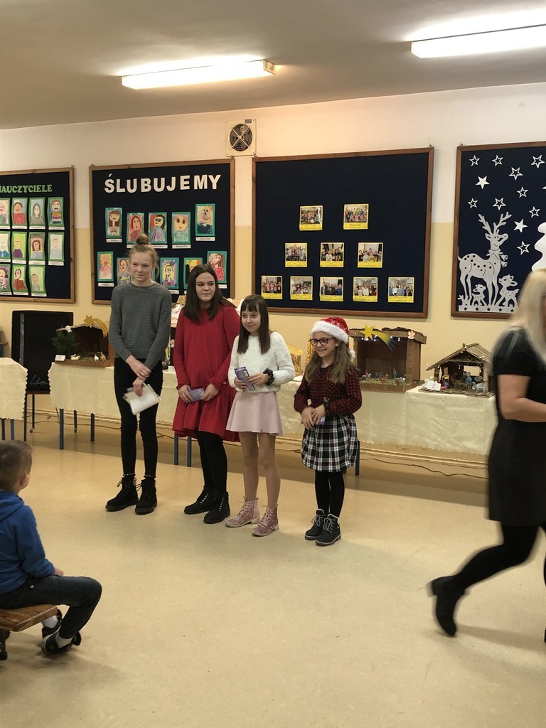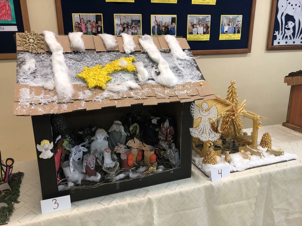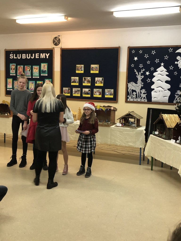 Rada Sołecka wraz z Radą Rodziców przed miesiącem ogłosiła konkurs na Najpiękniejszą Szopkę Bożonarodzeniową. Każda klasa oraz przedszkolacy naszej szkoły mieli za zadanie wykonać wspólnie szopkę. Pomysły były różne, a dzieci chętnie się zaangażowały w pracę, a było o co walczyć. Za pierwsze miejsce można było zdobyć 150 zł, za drugie- 100zł, a za trzecie -50 zł