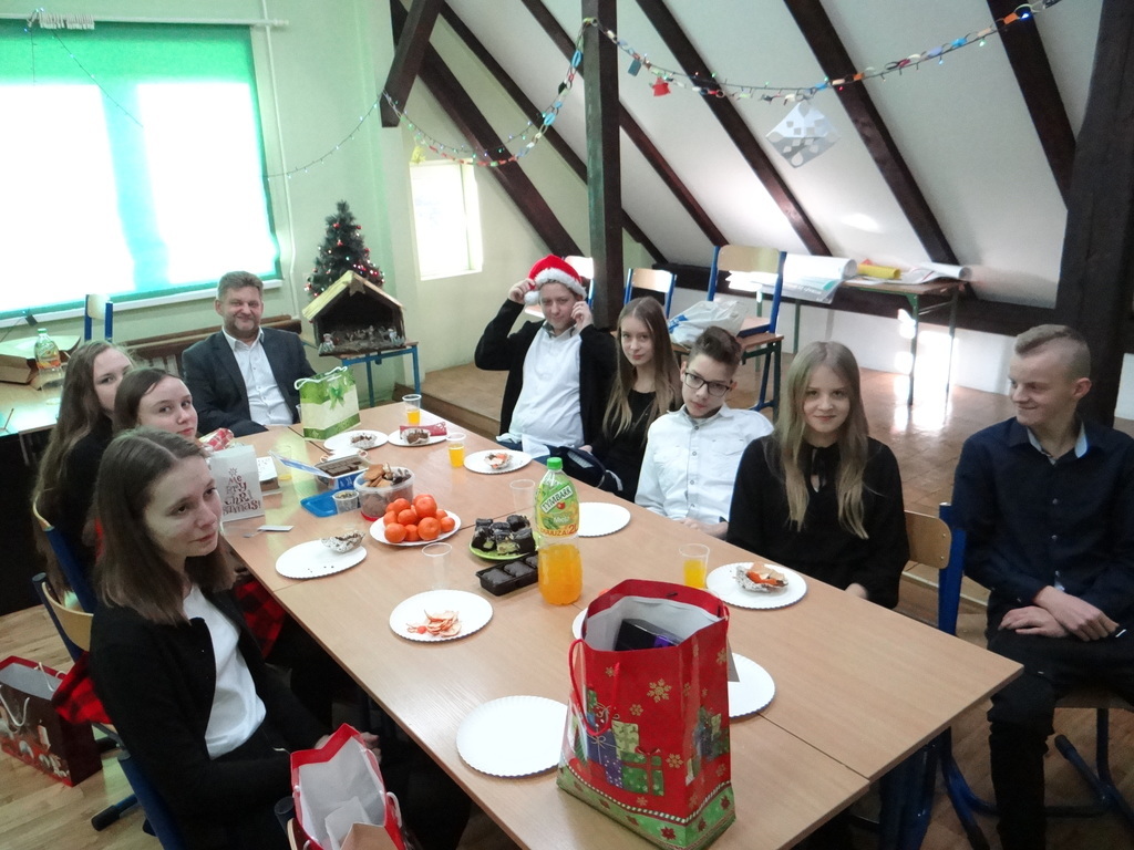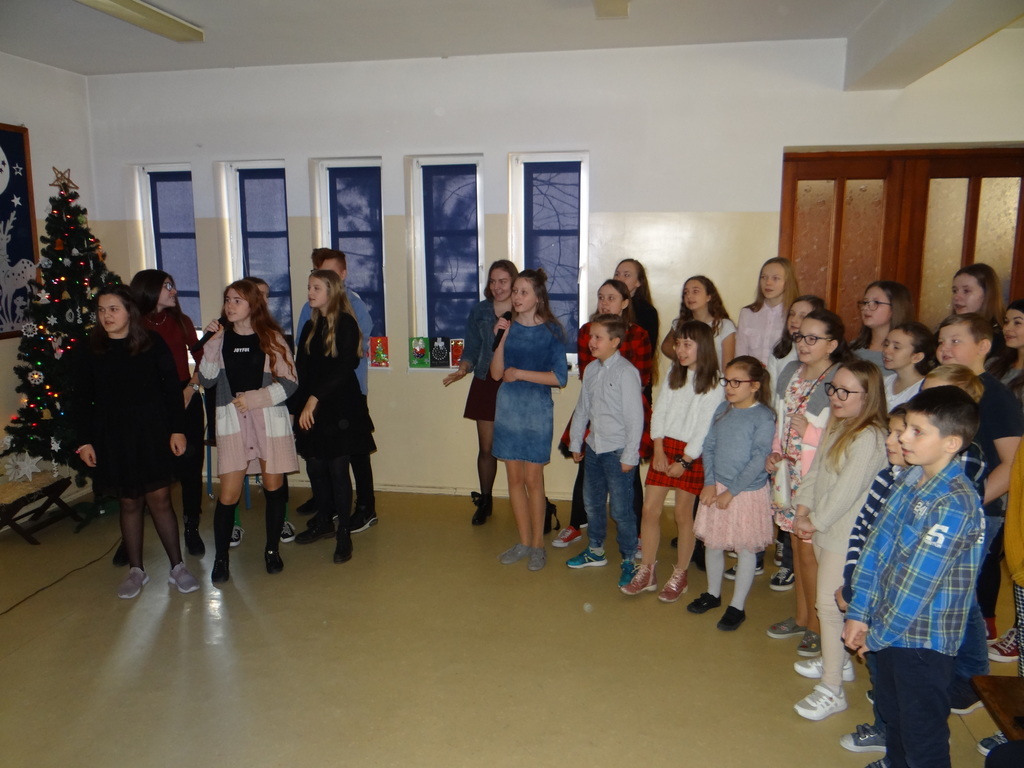 W dniu 20.12.2019roku w naszej szkole odbył się wyjątkowy dzień. Wyjątkowy, bo ostatni w tym roku kalendarzowym. Tradycyjnie, był to dzień pełen wrażeń dla naszych uczniów a także czas spędzony z wychowawcami podczas szkolnych wigilii klasowych. Na początku uczniowie zostali zaproszzeni na świąteczny seans filmowy. Młodsi obejrzeli film pt." Klaus" , a starsi " Kroniki świąteczne". Następnie klasy spotkały się na klasowych wigiliach, a później samorząd szkolny zaprosił wszystkich na koncert kolęd w wkonaniu naszych uczniów.