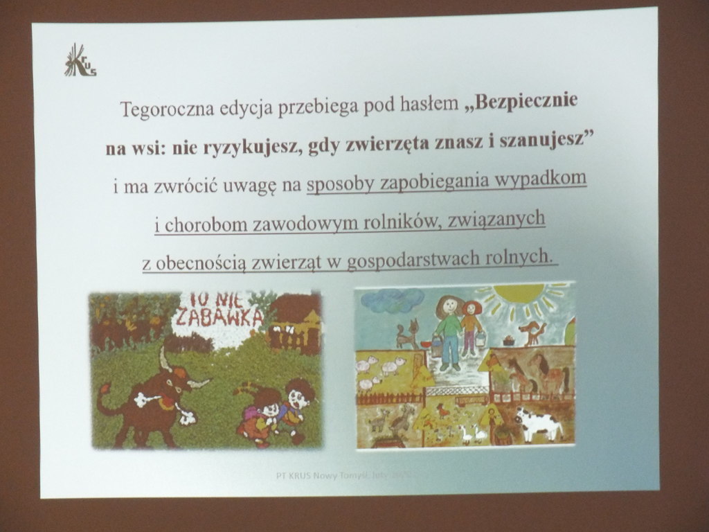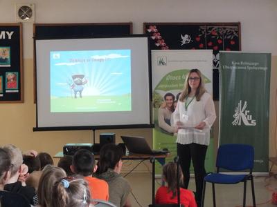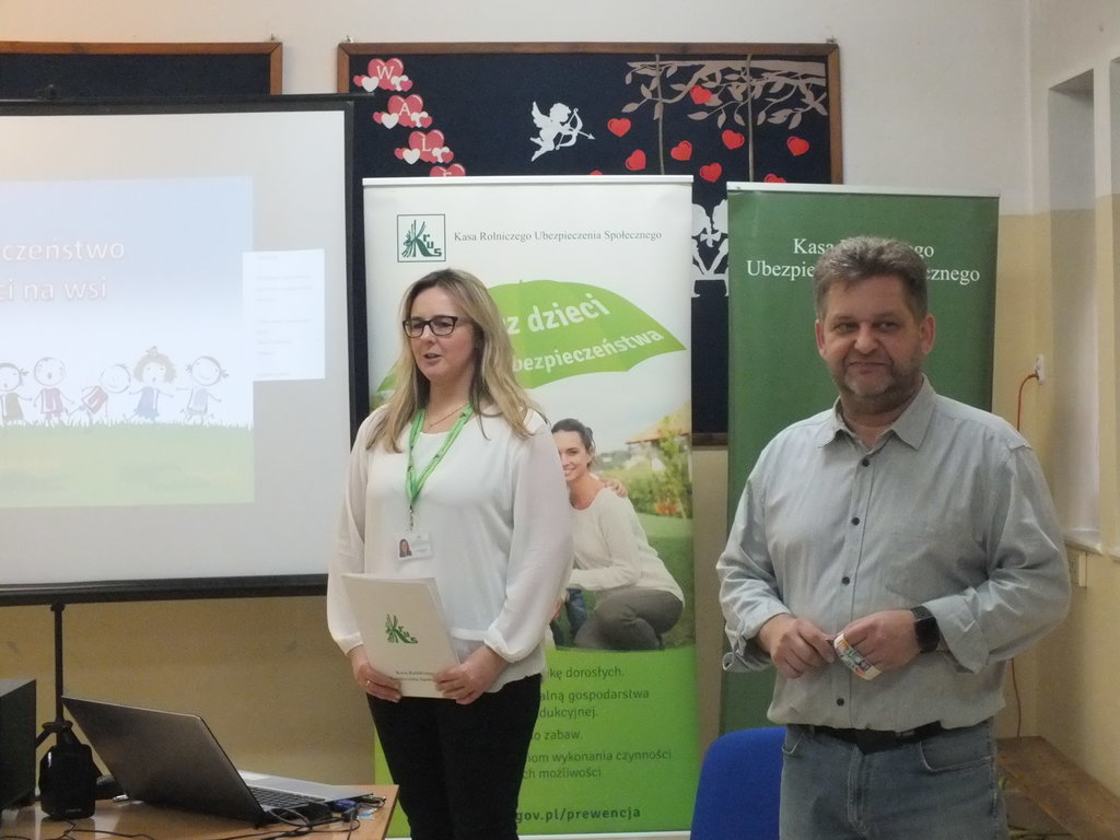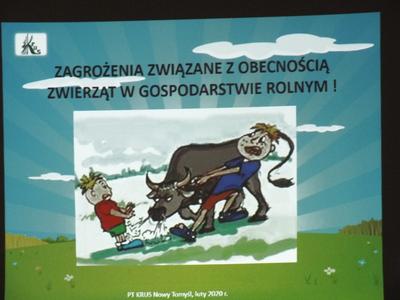 18 lutego 2020r.odbyło się spotkanie uczniów naszej szkoły z pracownikiem KRUSU. Dzieci zostały zaproszone do udziału w X Ogólnopolskim Konkursie Plastycznym dla Dzieci, który w tym roku przebiega pod hasłem ,,Bezpiecznie na wsi: nie ryzykujesz gdy zwierzęta znasz i szanujesz”. Pracownik Krusu wyjaśnił zadania konkursowe, omówił zagadnienia przedstawione w czasie prezentacji I zachęcił do udziału w konkursie.