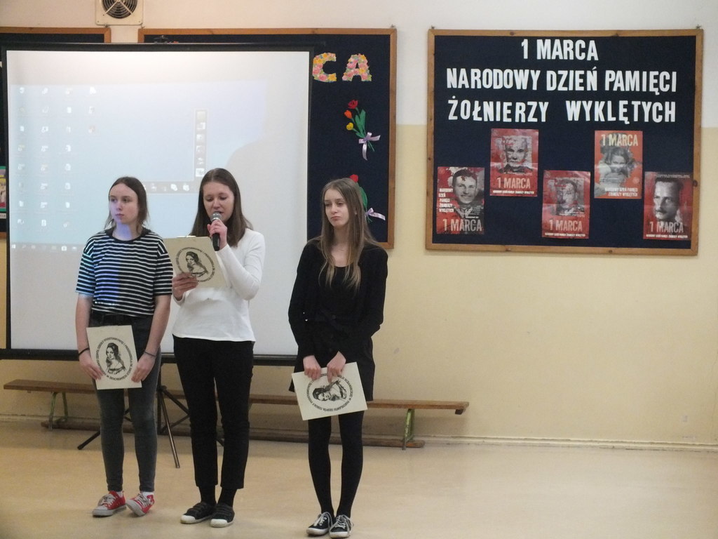Z tej okazji uczniowie klasy ósmej wraz z nauczycielem historii przygotowali gazetkę i apel na ten temat. Młodzież naszej szkoły miała okazję zaznajomić się z niełatwymi kartami polskiej historii, w przystępny sposób zaprezentowane zostały dzieje Żołnierzy Niezłomnych. Uczniowie dowiedzieli się również o historii samego święta – obchodzimy ten dzień dopiero od 2011 roku