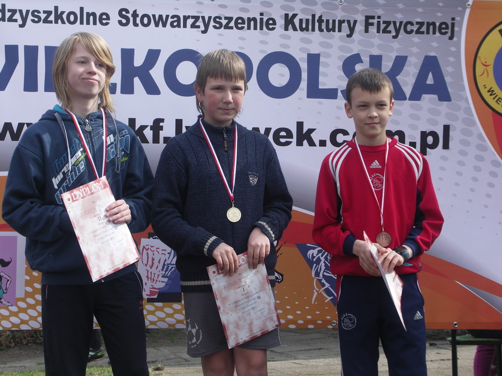 W dniu 11 kwietnia br. chętni biegacze z naszej szkoły wzięli udział w gminnych eliminacjach biegów przełajowych, które odbyły się w Grońsku. Naszą szkołę reprezentowali: Weronika Wrembel, Kinga Ratajczak, Remigiusz Fornalik, Patryk Ochowiak i Maciej Pilarczyk z kl. IV Agata Kandulska, Marcin Stachowiak i Rafał Lehmann z kl. V oraz Romana Hała, Wiktoria Białek, Aleksandra Szuba, Dominik Dolata i Arnold Patuła z kl. VI. Wszyscy nasi zawodnicy spisali się bardzo dobrze, gdyż wszyscy ukończyli bieg a aż pięciu - Agata Kandulska, Romana Hała, Remigiusz Fornalik ( III miejsce), Marcin Stachowiak i Rafał Lehman ( II miejsce), zakwalifikowało się na biegi powiatowe i reprezentować będzie naszą Gminę na zawodach powiatowych, które odbędą się za tydzień w Bolewicku. Wszystkim uczniom za reprezentowanie naszej szkoły dziękujemy!.