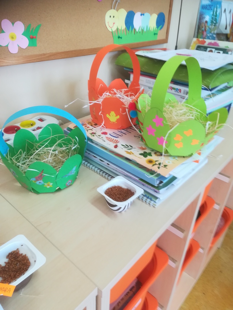 W przedszkolu od środy 24.03 do piątku 26.03 trwały przygotowania do świąt wielkanocnych.Dzieci przygotowały koszyczki wielkanocne, torebki -zające , zasiały rzeżuchę, oglądały koncert. Panie kucharki upiekły mazurki, które zostały udekorowane przez przedszkolaków. największą atrakcją było szukanie zajączka na placu zabaw. Niestety nie zdążyliśmy zrealizować wszystkich pomysłów i planów w przedszkolu z powodu odwołania zajęć spowodowanych stanem epidemicznym w kraju. Niektóre z nich np. obserwacja wzrostu rzeżuchy, wykonanie ozdób dzieci w miarę możliwości wykonają z rodzicami w domu.
