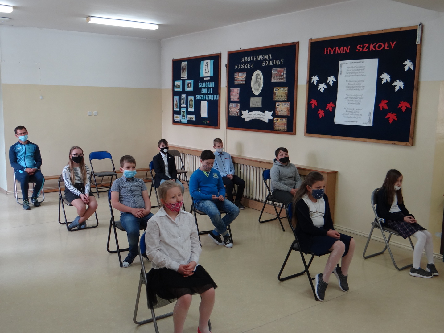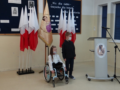 Wchodząc do szkoły wita uczniów, pracowników i gości portret Emilii Sczanieckiej autorstwa Pana Mirosława Kotlarka. Pod nim umieszczone zostało motto – "NIC DLA SIEBIE - WSZYSTKO DLA INNYCH", które wdrażamy w życie również w okazjonalnych zbiórkach dla potrzebujących i tak będzie tym razem o czym poinformowano na apelu. Społeczność szkolna zaprasza wszystkich mieszkańców do odwiedzenia wystawy, która znajduje się w oknach świetlicy wiejskiej.