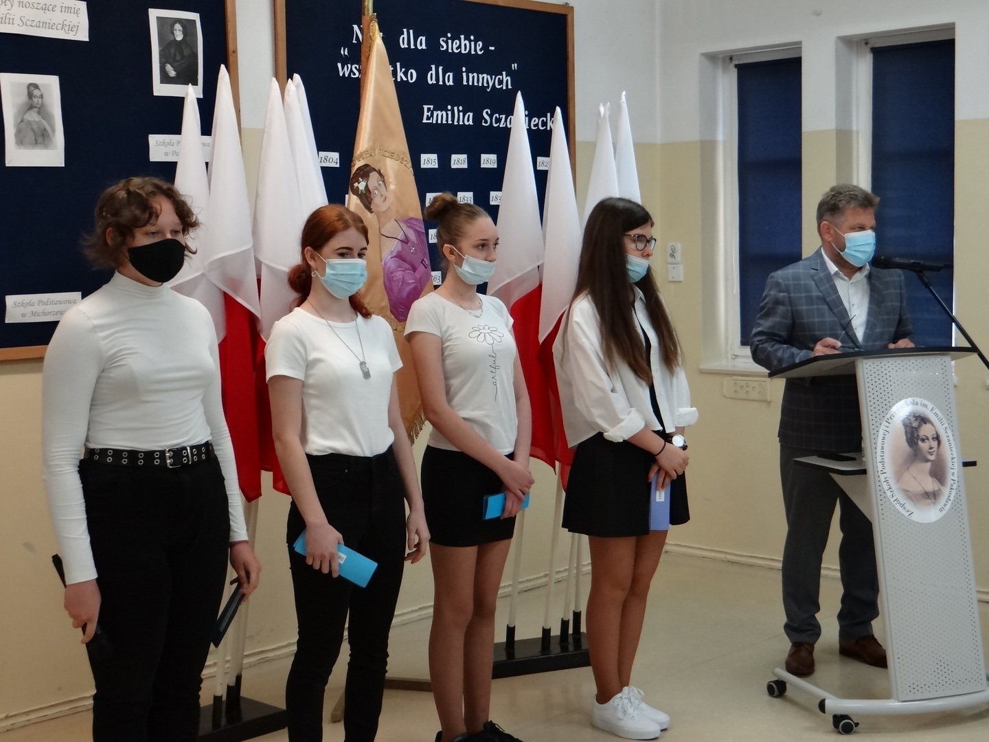 W 217 rocznicę urodzin Emilii Sczanieckiej uczniowie naszej szkoły upamiętnili patronkę, której idee towarzyszą pokoleniom absolwentów od 1974 roku. Mając na uwadze istniejącą sytuację pandemiczną spotkaliśmy się w kilku mniejszych grupach aby przypomnieć ważne daty z życia patronki, jej wielopłaszczyznowe patriotyczne działania oraz wpływ na rozwój lokalnej społeczności. Przedstawiono również informacje o innych szkołach noszących imię Emilii Sczanieckiej oraz wręczono nagrody w organizowanych podczas zdalnego nauczania świątecznych konkursach. W ramach zajęć tematycznych uczniowie przygotowali lapbooki, a sporo emocji dostarczyło dyktando przygotowane w oparciu o prezentowane na apelu informacje z życia patronki. Przedszkolacy i młodsi uczniowie udali się na spacer śladami Emilii. Przewodniczący klas zapalili znicz przy obelisku oraz złożyli kwiaty pod tablicą pamiątkową. Podobnie jak w poprzednich latach reprezentanci społeczności uczniowskiej złożyli wiązankę kwiatów w miejscu wiecznego spoczynku Patronki Szkoły przy Kościele Parafianym w Michorzewie.