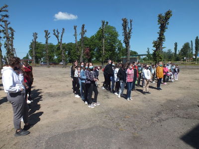 Dziś po dużej przerwie na boisku szkoły odbyło się spotkanie wszystkich uczniów z nauczycielami. Pan Dyrektor przywitał uczniów, stwierdzając, że cieszy się widząc całą społeczność w dobrej kondycji, uśmiechniętą i pełną zapału.