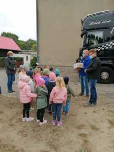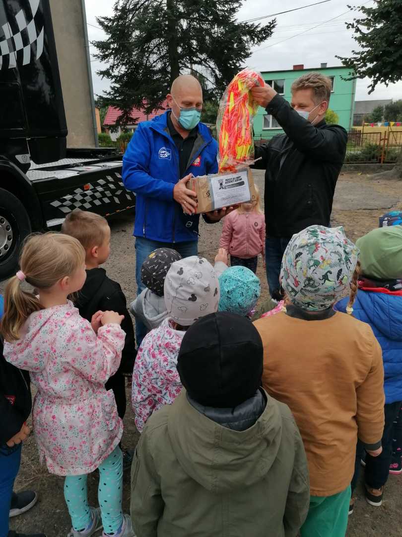 We wtorek 21.09.2021 r. przedszkolaków odwiedził pan Robert Owczarzak ze Stowarzyszenia Klubu Polskiego Trakera. W ramach akcji "kierowcy- dzieciom" pan Robert przekazał dzieciom odblaskowe kamizelki, aby były widoczne podczas przedszkolnych wędrówek. Dzieci, dzięki firmie DAKAZ TRANS miały okazję wsiąść do auta i zobaczyć jak wygląda kabina kierowcy. Radość była ogromna. SERDECZNIE DZIĘKUJEMY!