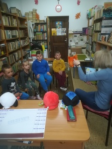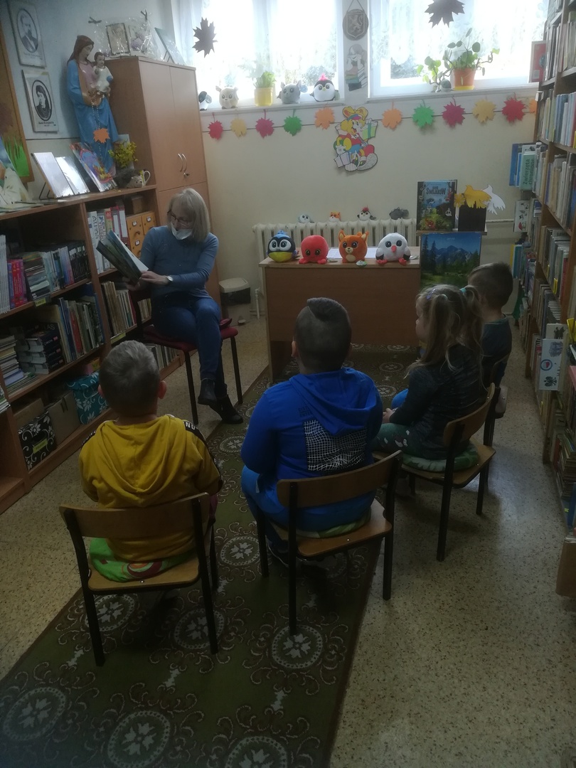 W środę 27.10 grupa starszaków udała się do biblioteki na czytanie. Pani Ulka przeczytała pierwsze opowiadanie z serii "Gang Swojaków", którego bohaterką była wiewiórka.Wszyscy z zaciekawieniem słuchali jej przygód.Na zakończenie spotkania dzieci otrzymały książeczki do zbierania naklejek ze zwierzątkami.