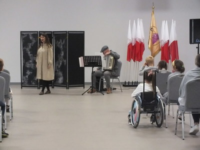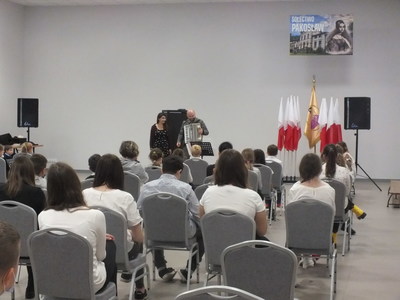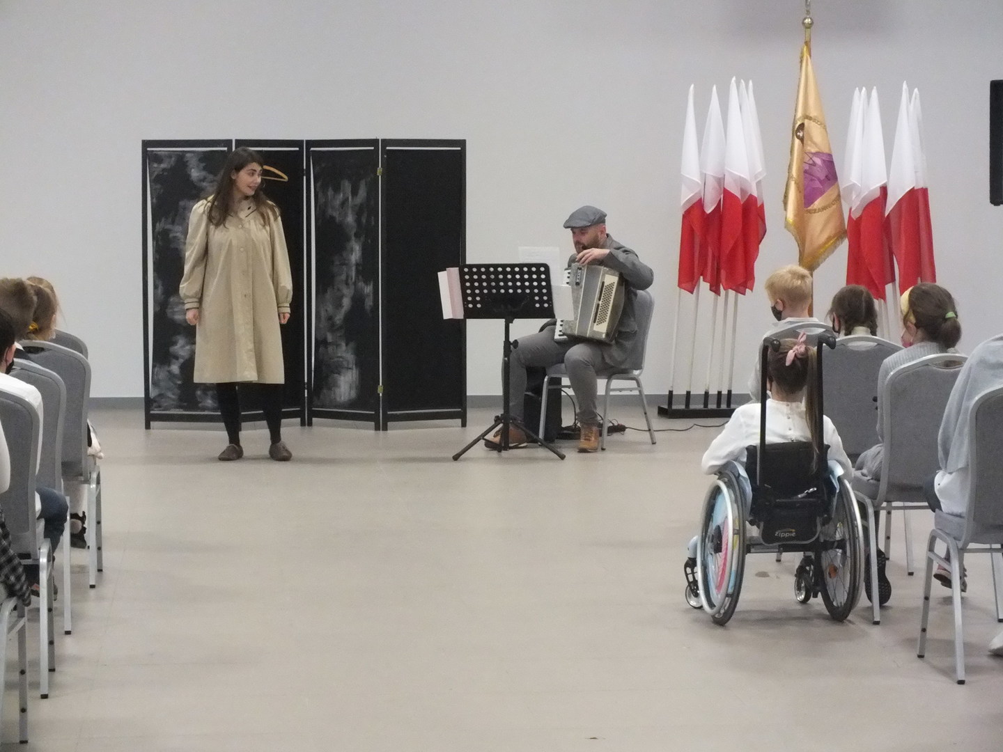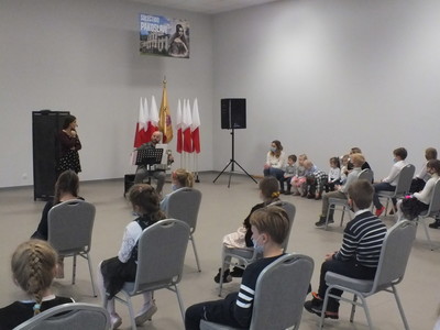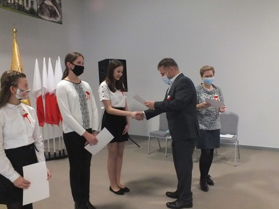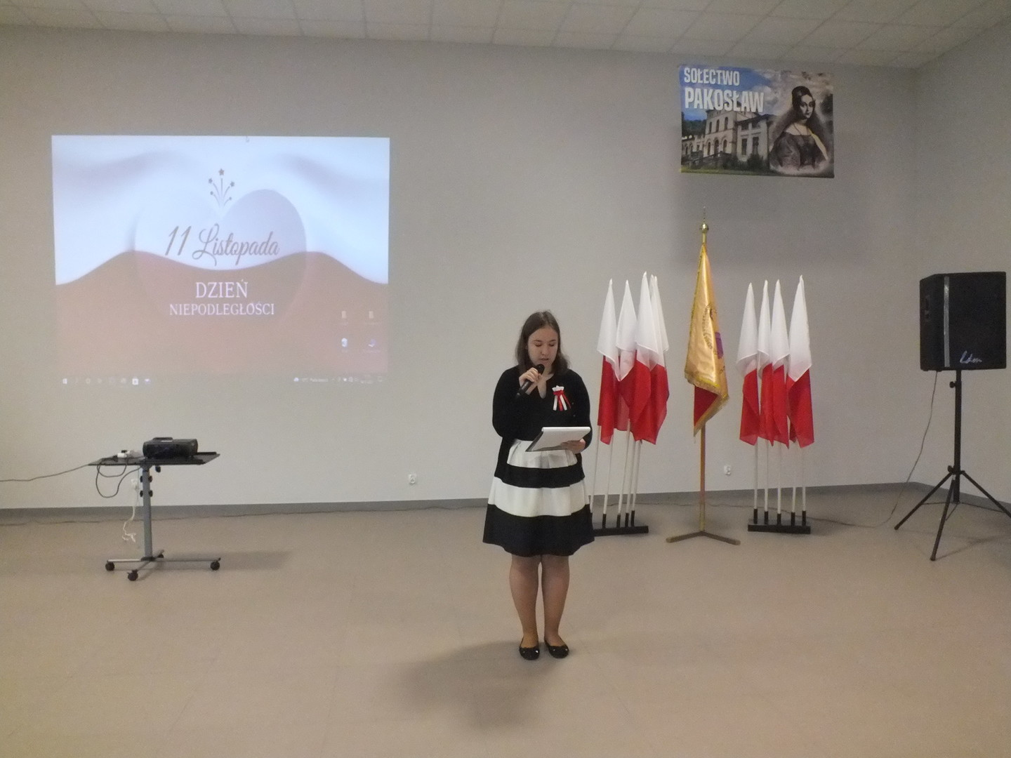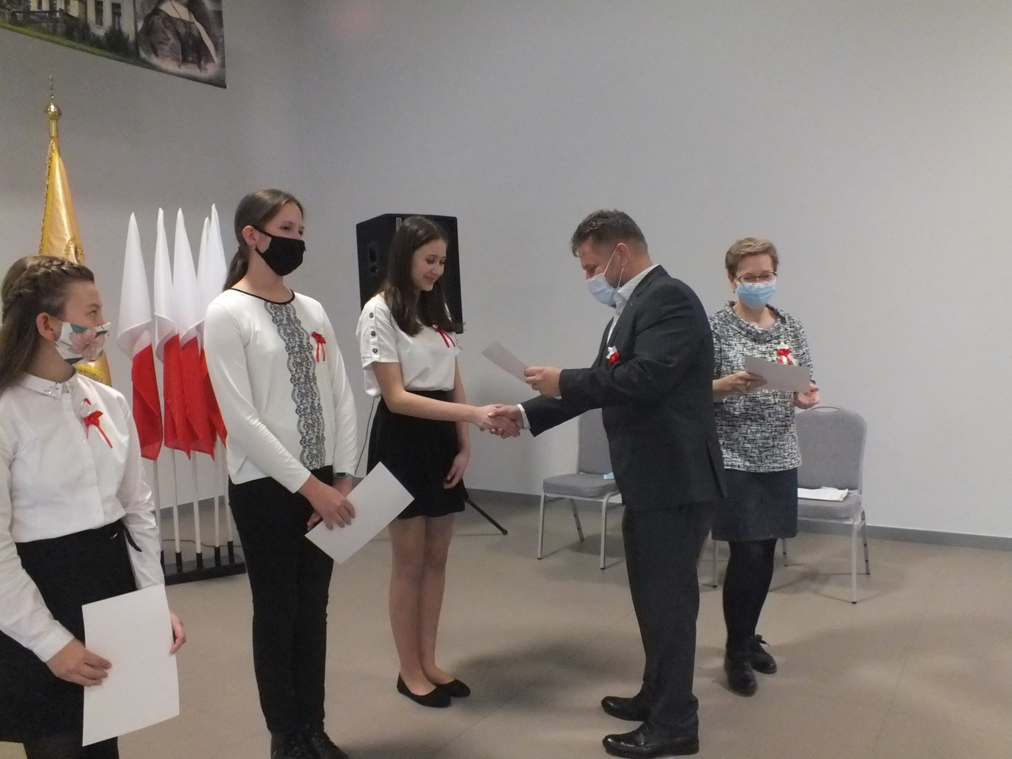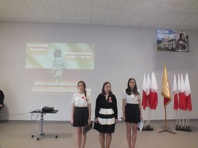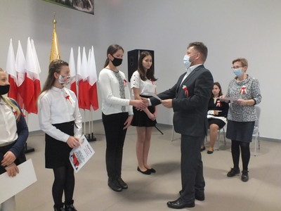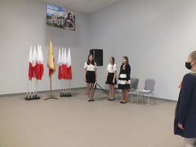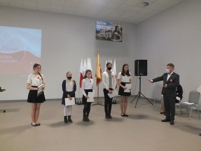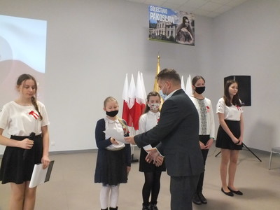 Amelia Kaczmarek, Nikola Robak, Marcelina Szarata i Oliwia Czapracka - uczennice klas 4-8 - swój patriotyzm wyraziły prezentacją wierszy. Były to utwory wyłonione w szkolnym Konkursie Recytatorskim