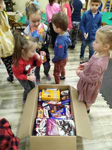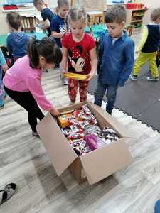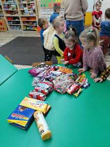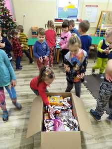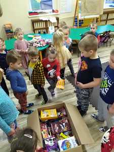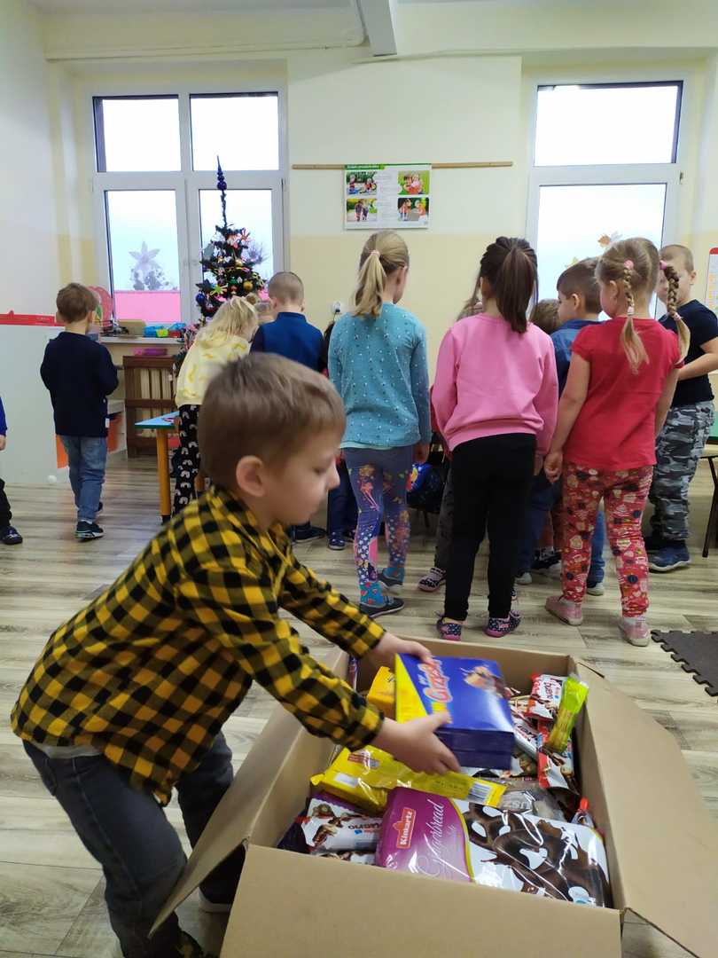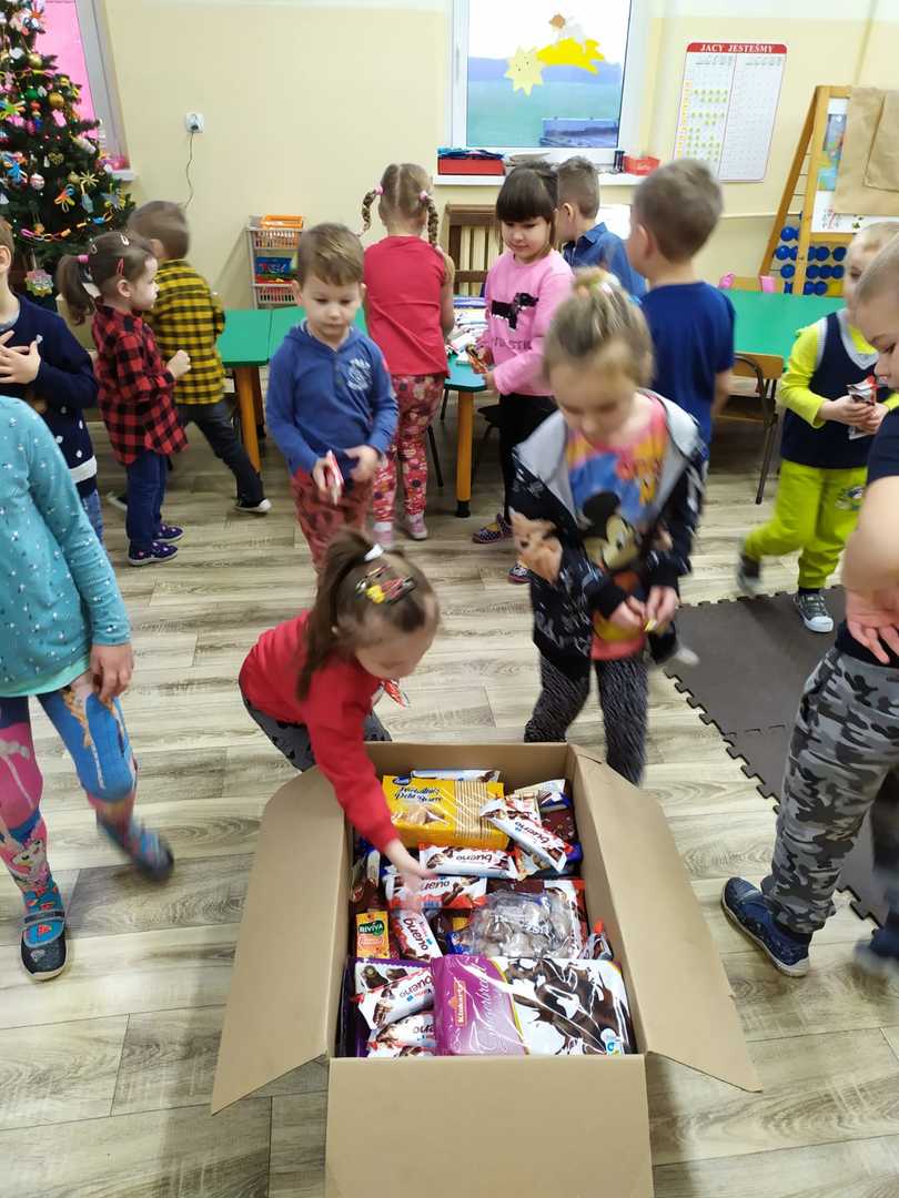 W tym roku przedszkolacy wzięli udział w akcji zbierania słodyczy dla dzieci z domu dziecka w Otorowie i Lipnicy organizowanej przez pana Hadyniaka oraz miały możliwość spotkania z Mikołajem, któremu przekazały paczki ze słodyczami i życzenia dla dzieci. Serdecznie dziękujemy przedszkolakom i ich rodzicom za udział w zbiórce. Wierzymy, że udało nam się podarować naszym rówieśnikom odrobinę radości na nadchodzące święta.