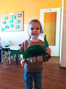 W poniedziałek 28.02 w naszym przedszkolu obchodziliśmy "Dzień dinozaura". To nietypowe święto jest obchodzone przez dzieci z wielką przyjemnością.Przedszkolaki obejrzały prezentację multimedialną przedstawiającą historię dinozaurów, ich cechy i gatunki.Odbyły się wspólne zabawy ruchowo-naśladowcze, matematyczne i plastyczne. Każdy wykonał prehistorycznego stwora. Mimo niskiej frekwencji dzieci, był to bardzo udany dzień