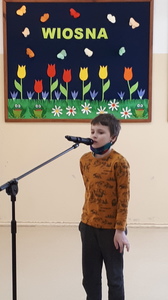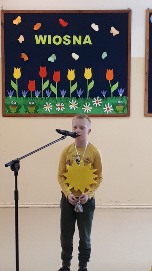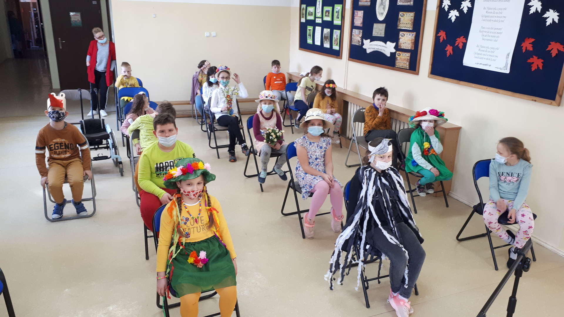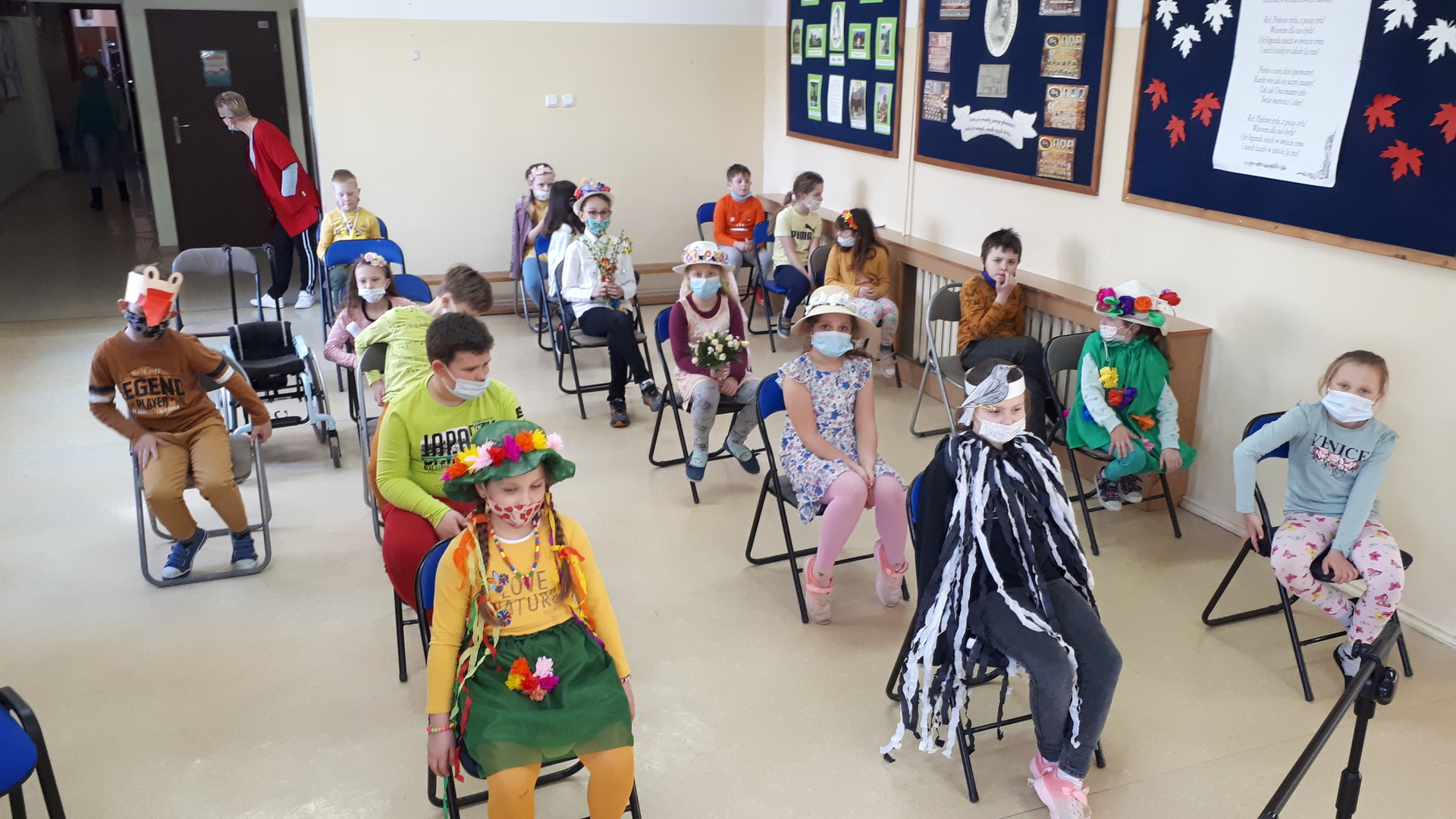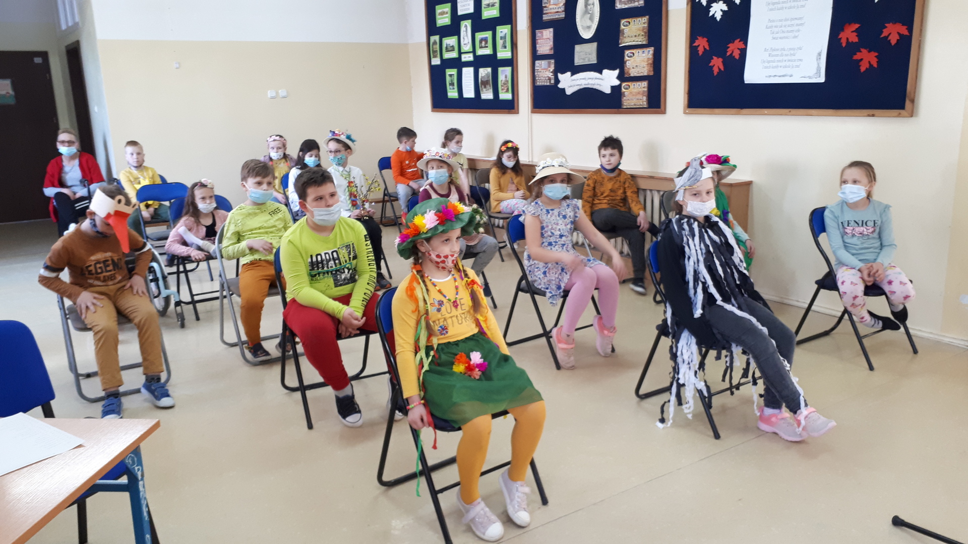 21 marca przedszkolacy oraz uczniowie klas I-III powitali wiosnę. Najpierw na zajęciach plastycznych wykonali przepiękne wiosenne gaiki. Następnie wyruszyliśmy barwnym korowodem na wieś powitać wiosnę. Na koniec uczniowie klas I-III wzięli udział w Szkolnym Konkursie Recytatorskim o tematyce wiosennej.