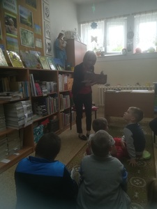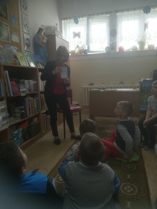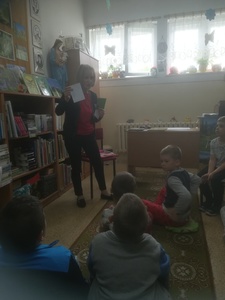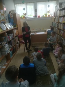 W środę 11.05.22 r. starszacy udali się do biblioteki, aby złożyć życzenia pani Ulce z okazji "Dnia Bibliotekarza". Pani Ulka opowiedziała o pracy w bibliotece, kiedy można zapisać się i wypożyczyć książkę. Przedszkolacy z uwagą wysłuchali bajki z cyklu "Tupcio Chrupcio" pt. " Dbam o zęby". Na zakończenie spotkania pani Ulka poczęstowała cukierkami i wafelkami. Paniom Bibliotekarkom życzymy samych miłych czytelników.