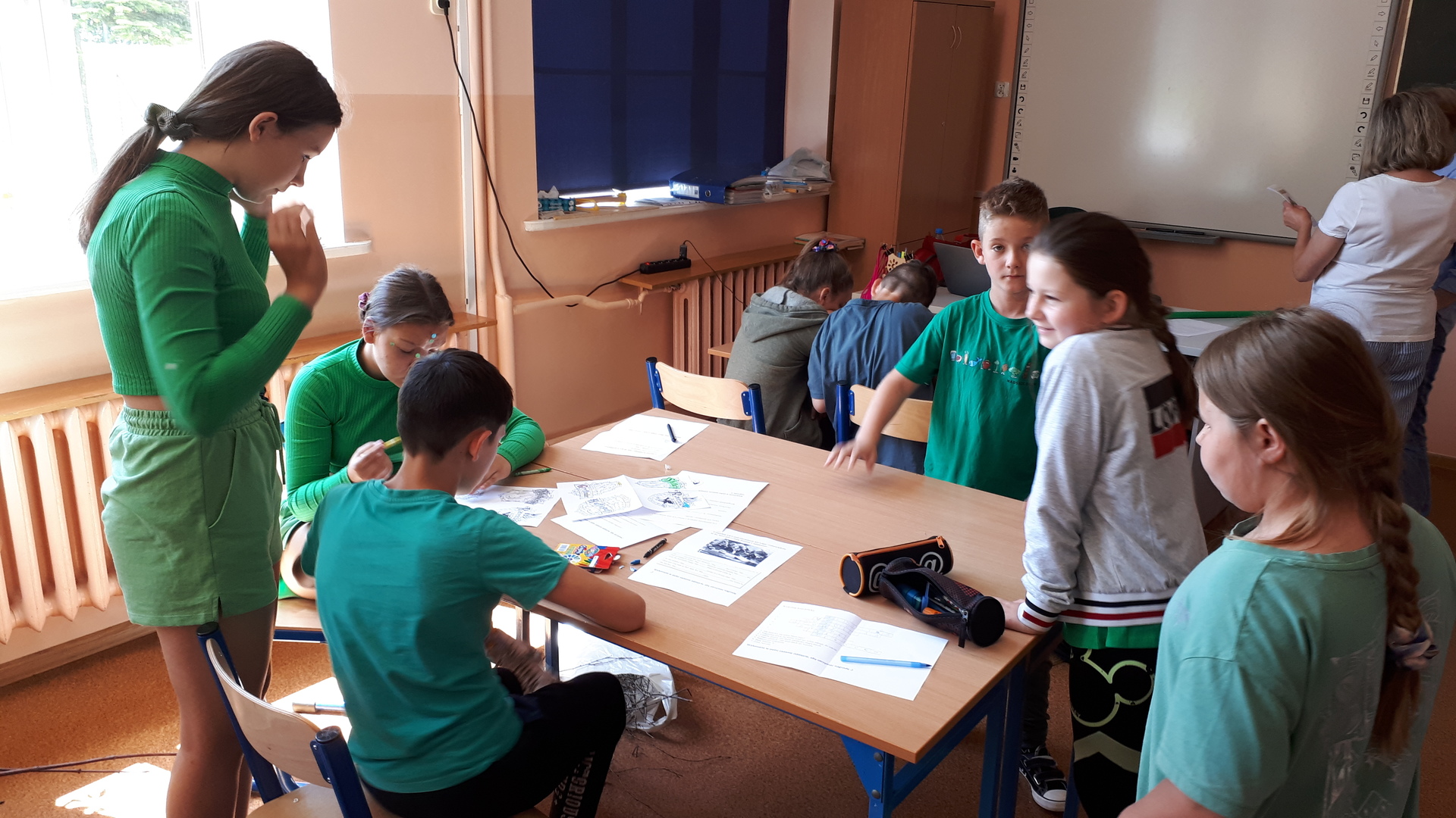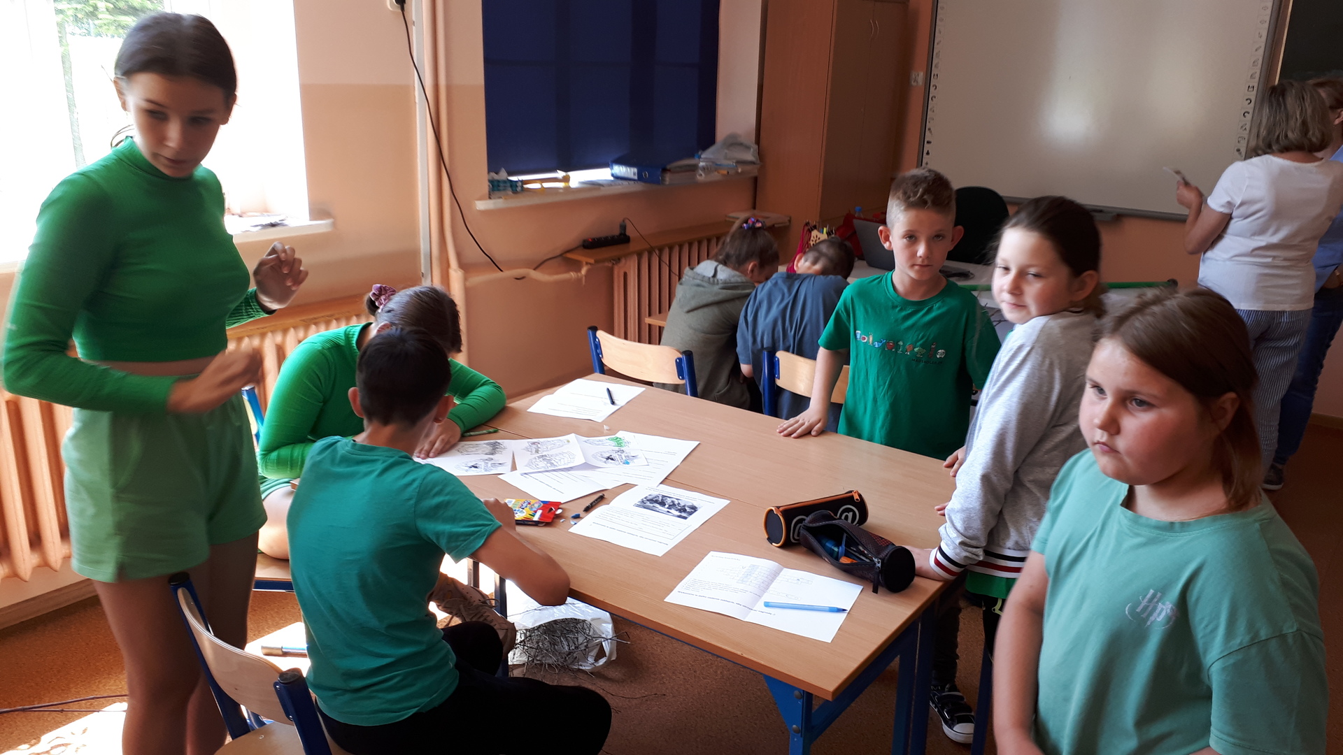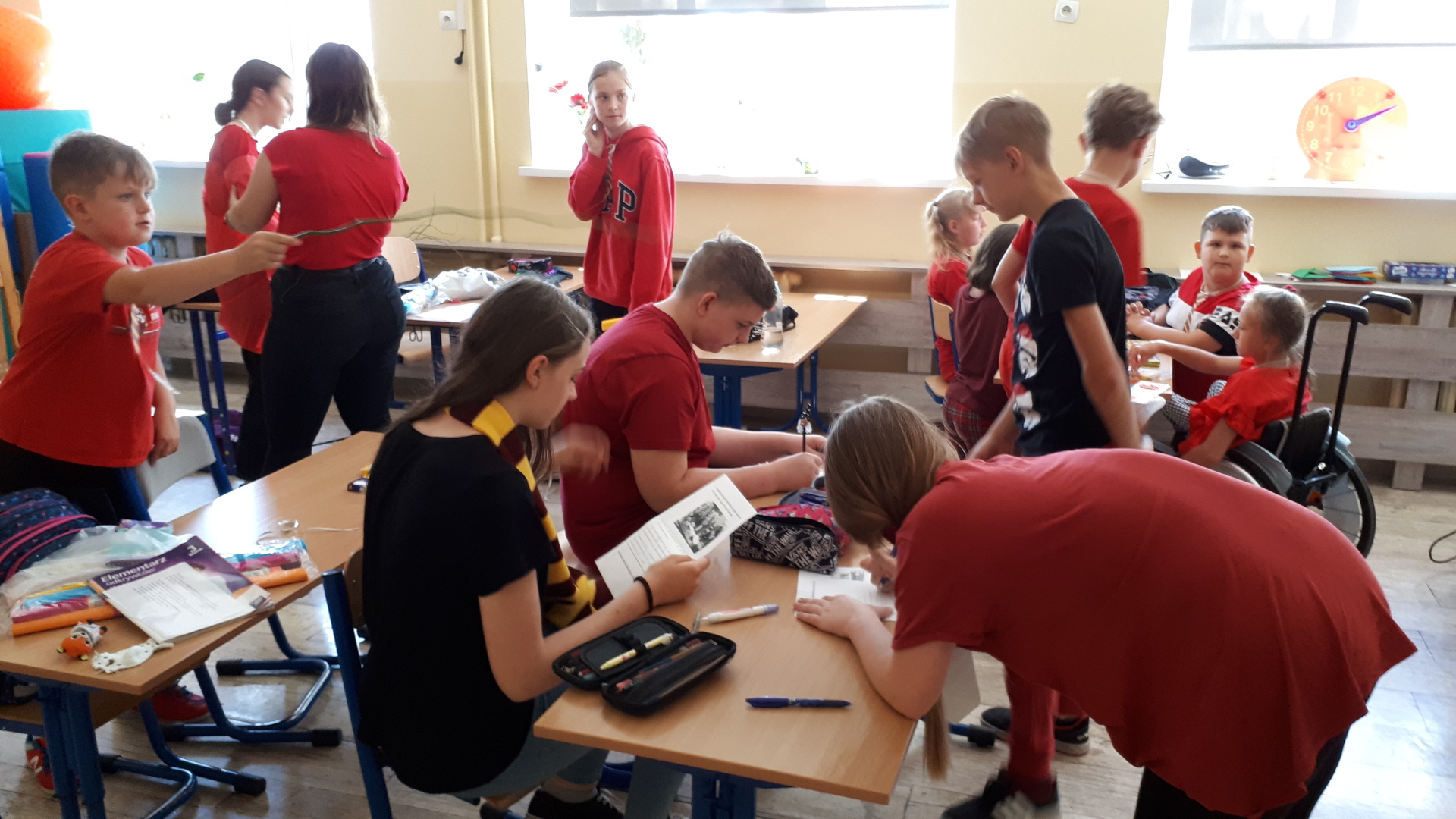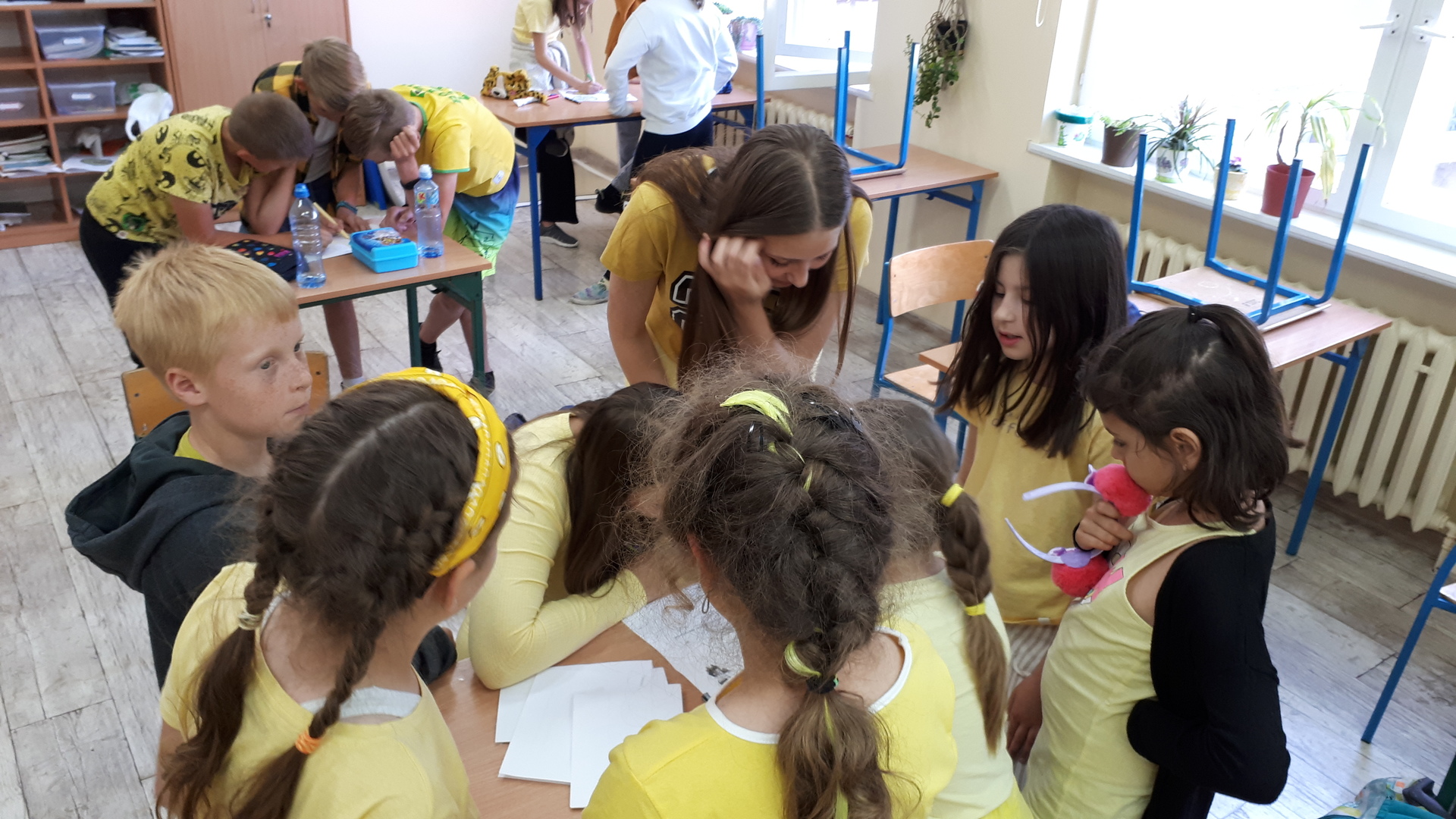 Dnia 22.06.2022 w naszej szkole został zorganizowany kolejny projekt z cyklu Dzień Angielski. Tym razem tematem przewodnim zajęć był film Harry Potter i kamień filozoficzny. Kilka dni wcześniej uczniowie wykonali test przydziału do domów w Hogwarcie. Na podstawie testu uczniowie mieli przygotować sobie strój zgodny z „domem”, do którego należą oraz udekorować drzwi „domu”.