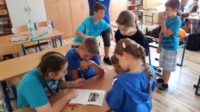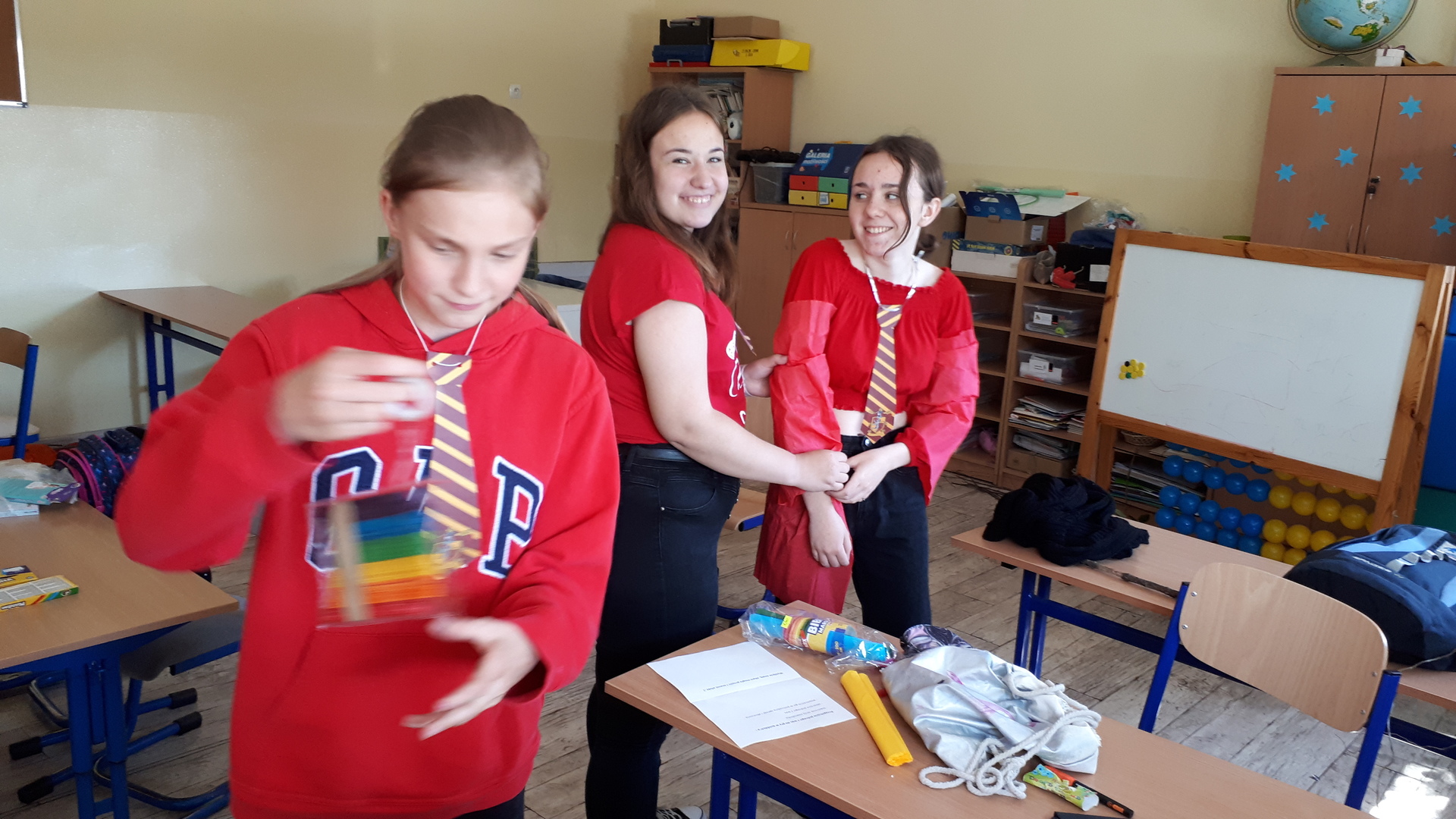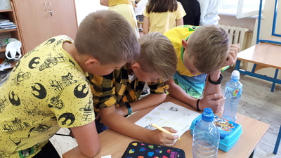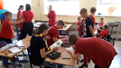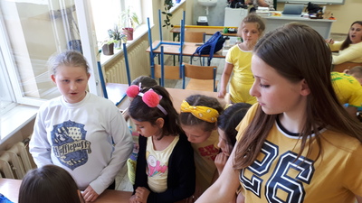 W dzień projektu uczniowie obejrzeli pierwszy film z cyklu o Harrym Potterze, a następnie udali się do swoich sal / domów. W każdej sali zostało ukrytych 16 zadań, które należało odnaleźć, a następnie wykonać. Rozwiązaniem były cechy członków danego „domu”. Zadania były związane z filmem, wymagały zdolności plastycznych i manualnych oraz skłaniały do powtórki gramatyki angielskiej. Uczniowie wykonali figurkę Puszka oraz zaprojektowali strój do gry w quidditch’a. Jednak, jak się okazało najbardziej odpowiedzialne zadanie miały „sowy” przynoszące rozwiązania zadań do organizatorki – liczył się spryt i dobra kondycja fizyczna :). „Domy” walczyły dzielnie, a walka była bardzo wyrównana. Finalnie wygrała drużyna niebieskich z Ravenclaw, a zatem zwyciężyła „wisdom” i „knowledge”. Wygrani otrzymali zasłużoną słodką nagrodę – czekoladki i fasolki wszystkich smaków...ale co najważniejsze wszyscy dobrze się bawili!
